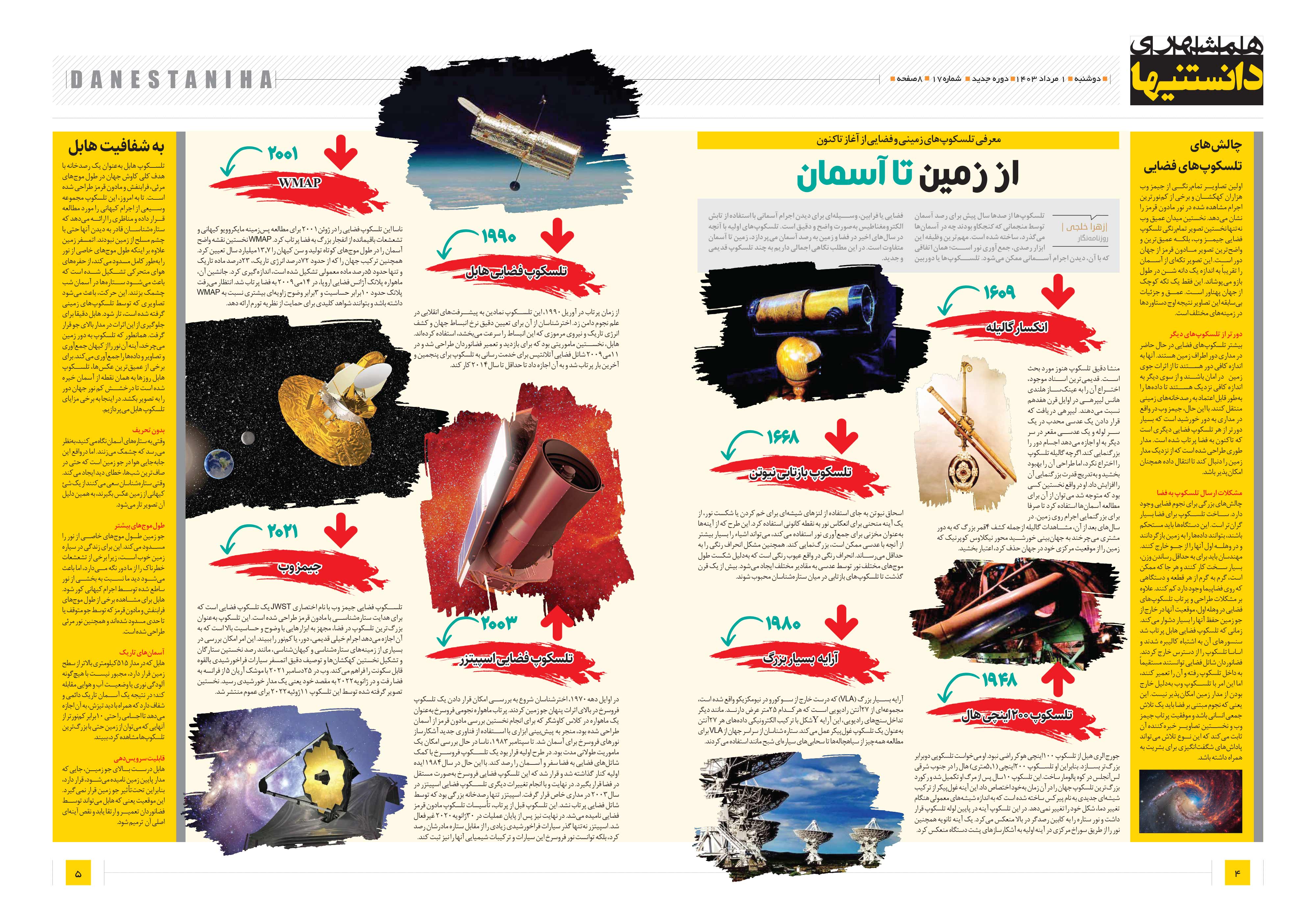 معرفی تلسکوپهای زمینی و فضایی از آغاز تاکنون