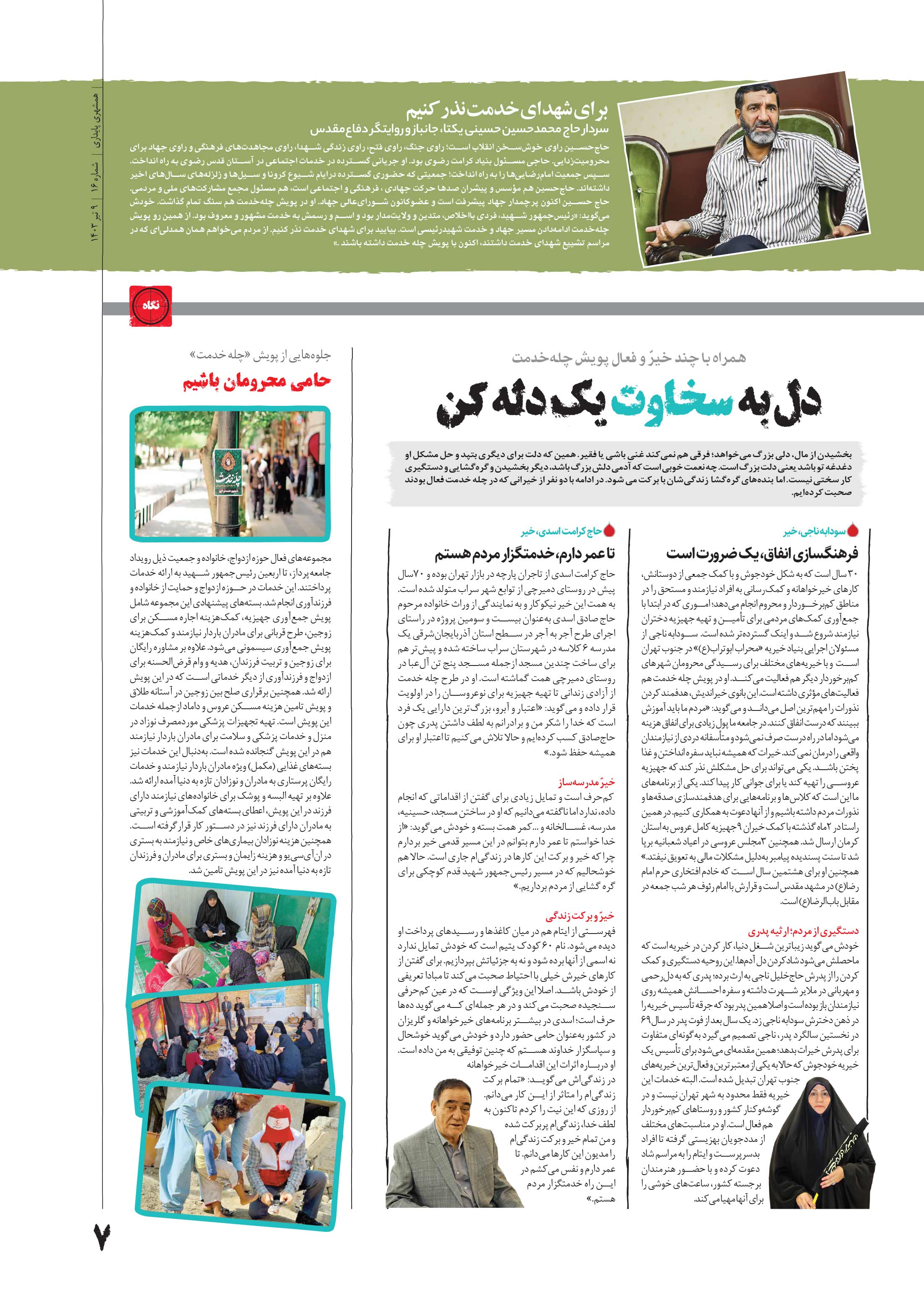 حاجحسین راوی خوشسخن انقلاب است؛ راوی جنگ، راوی فتح، راوی زندگی شهدا، راوی مجاهدتهای فرهنگی و راوی جهاد برای محرومیتزدایی. حاجی مسئول بنیاد کرامت رضوی بود. او جریانی گسترده در خدمات اجتماعی در آستان قدس رضوی به راه انداخت.