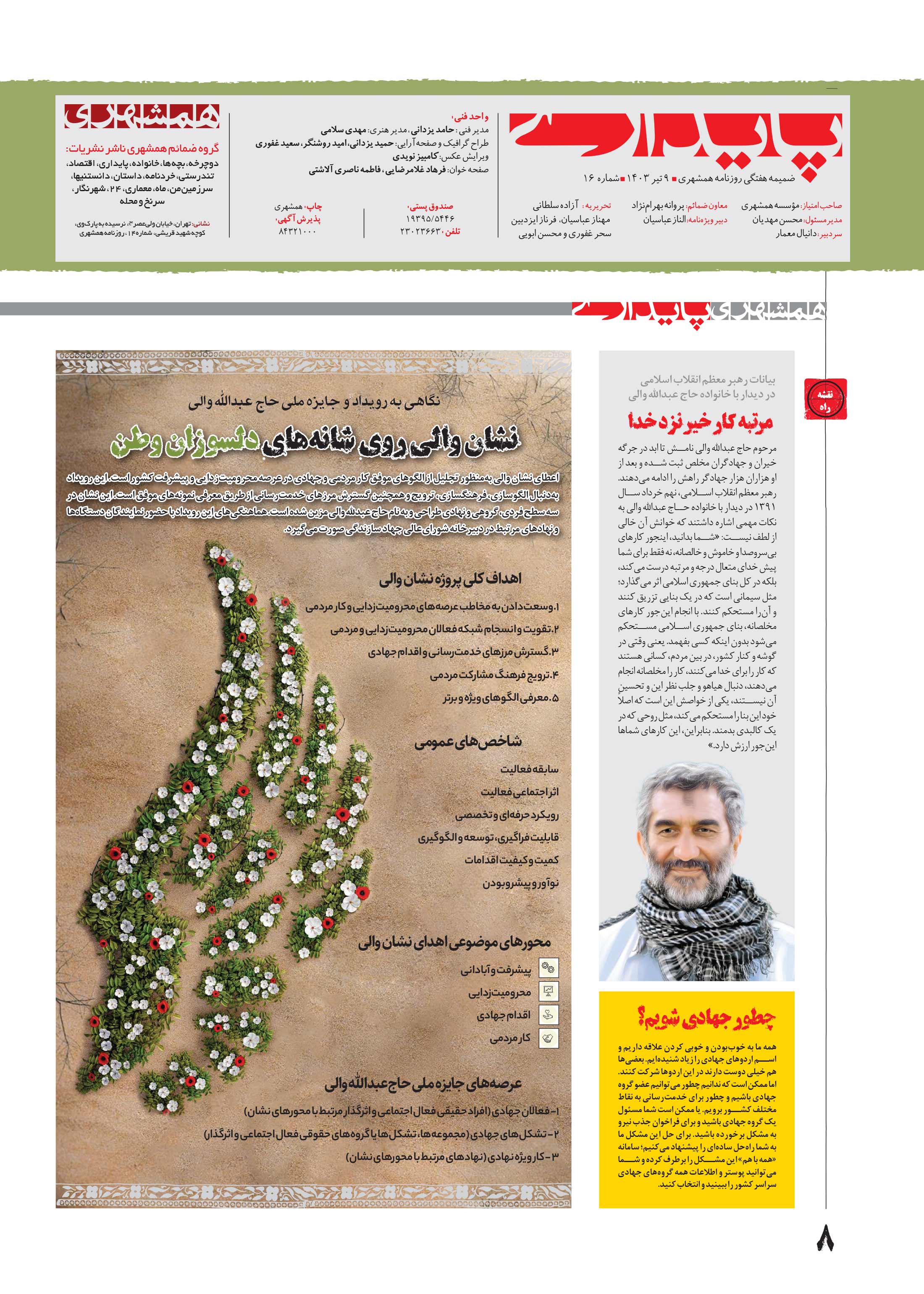 مرحوم حاج عبدالله والی نامش تا ابد در جرگه خیران و جهادگران مخلص ثبت شده و بعد از او هزاران هزار جهادگر راهش را ادامه میدهند.