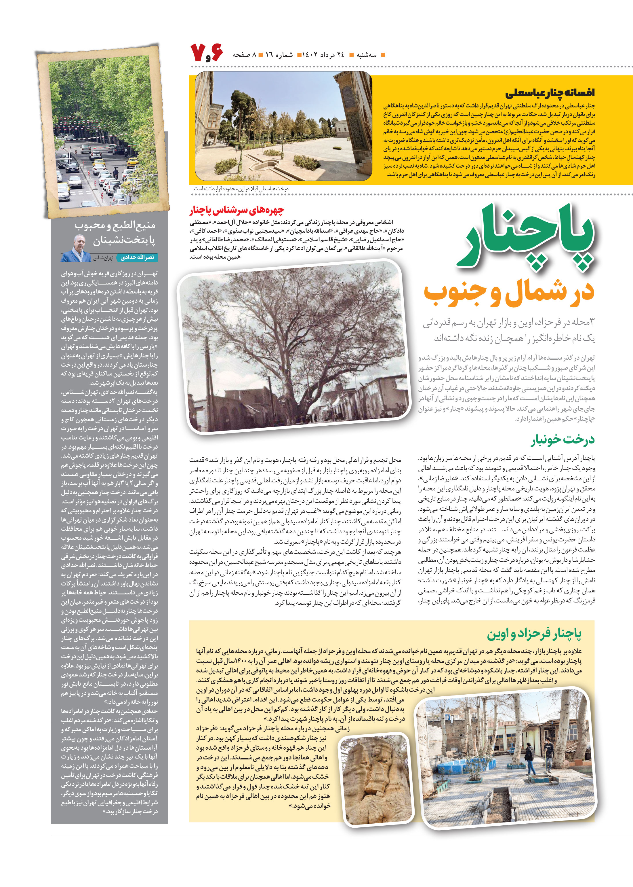 تهران در گذر سدهها آرامآرام زیر پر و بال چنارهایش بالید و بزرگ شد و این شرکای صبور و شکیبا چنان بر گذرها، محلهها و گرداگرد مراکز حضور پایتختنشینان سایه انداختند که نامشان را بر شناسنامه محل حضورشان دیکته کردند و در این همزیستی جاودانه شدند.