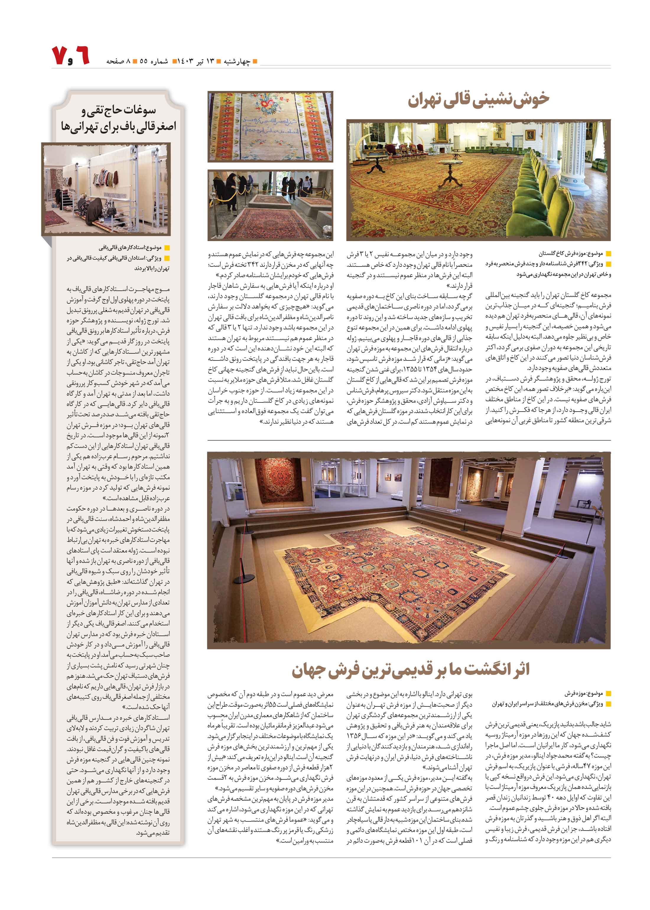 مجموعه کاخ گلستان تهران را باید گنجینه بینالمللی فرش بنامیم؛ گنجینهای که در میان جذابترین نمونههای آن، قالیهای منحصربهفرد تهران هم دیده میشود و همین خصیصه، این گنجینه را بسیار نفیس و خاص و بینظیر جلوه میدهد.