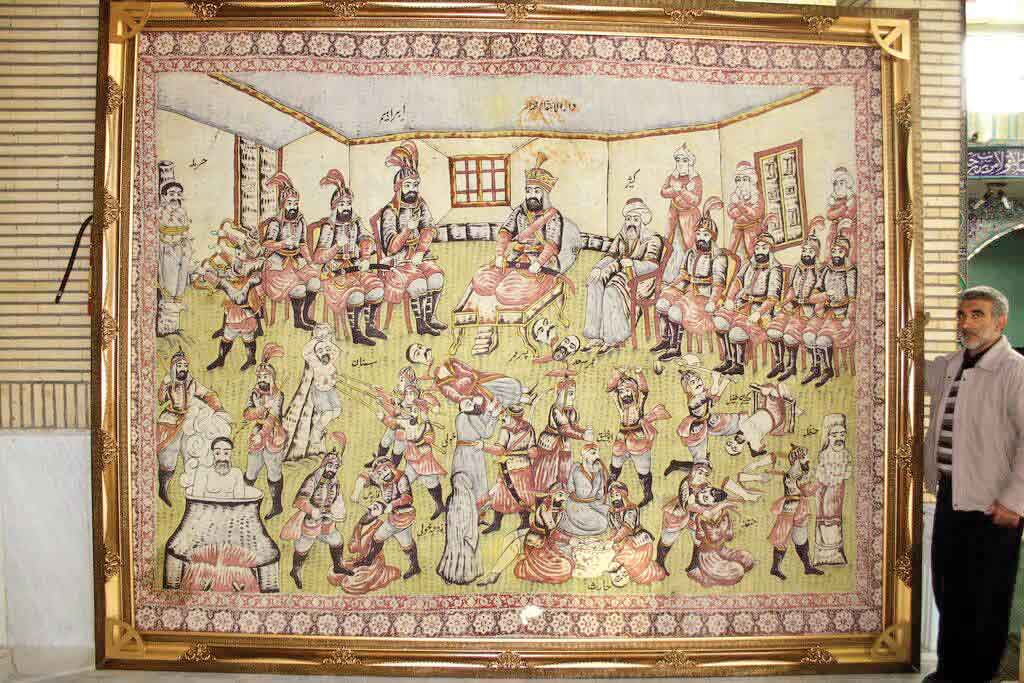 سالها پیش مردی به نام حاجاحمد کربلایی حسین که یکی از دکانداران قدیمی محله کن بود پردهای برگرفته از نقاشی حسین مدبر، نقاش برجسته ایرانی را به روستای کن آورده و هرسال در ایام محرم بر دیوار مغازه آویزان میکرد.