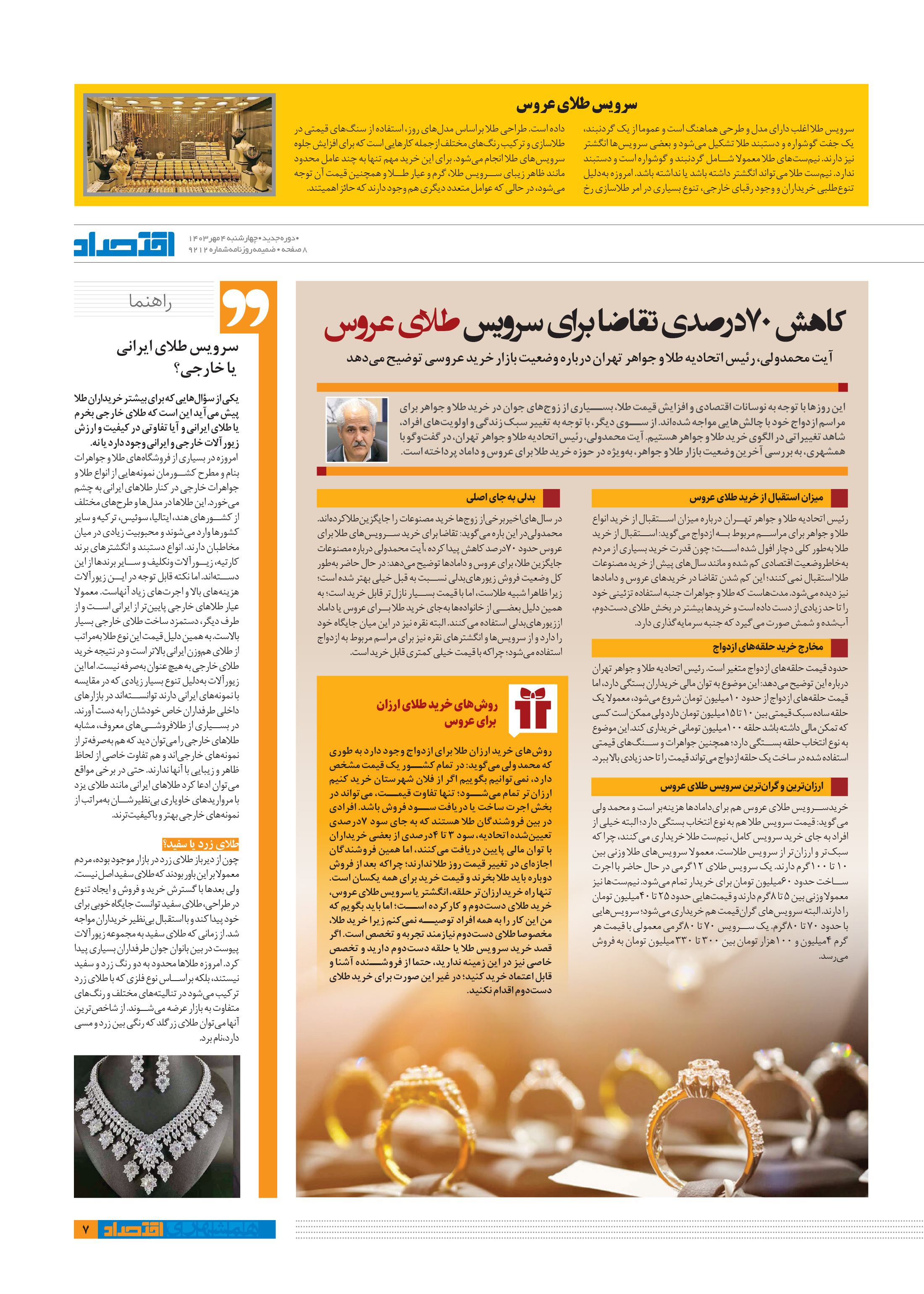 آیت محمدولی، رئیس اتحادیه طلا و جواهر تهران درباره وضعيت بازار خرید عروسی توضیح میدهد