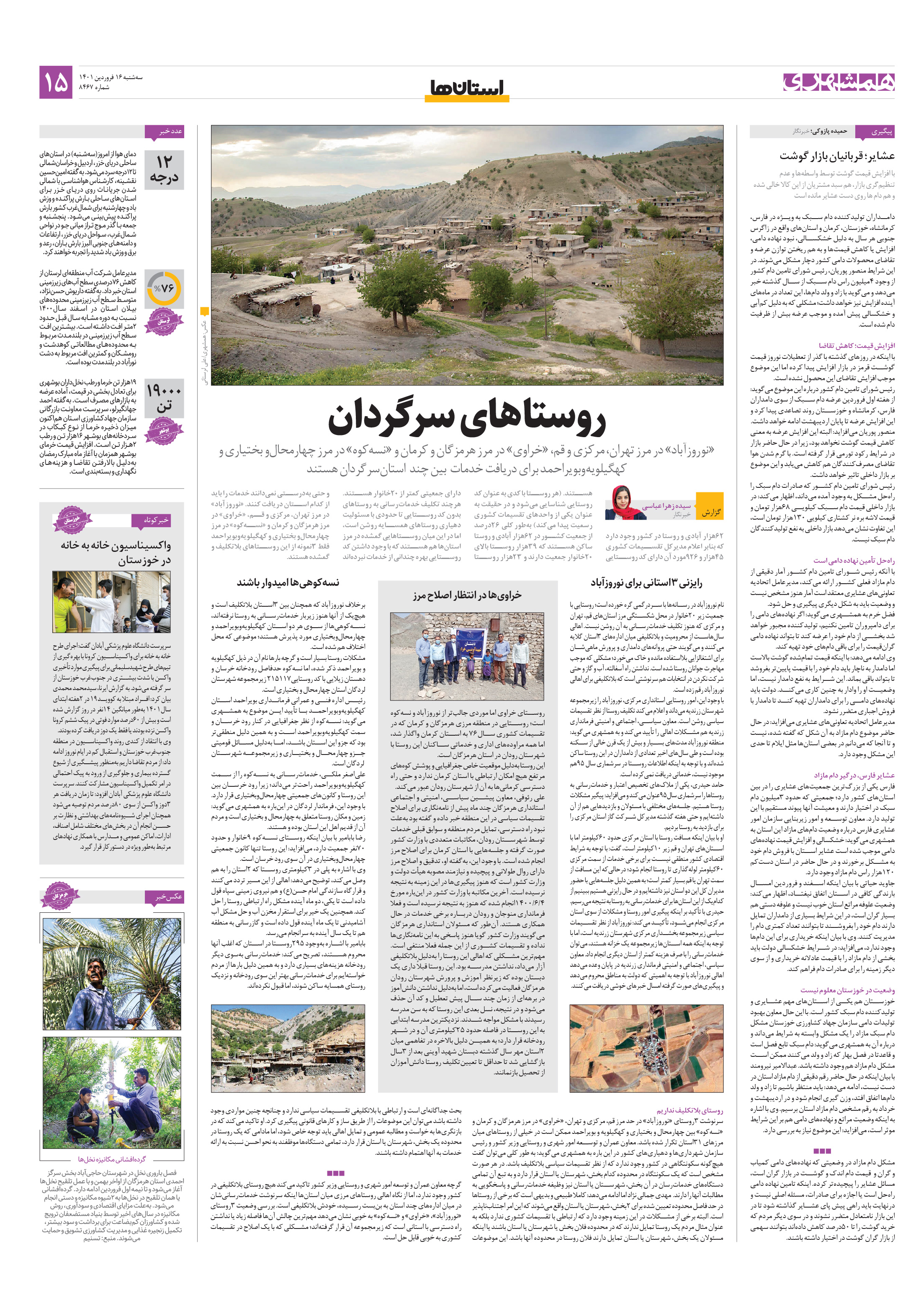 «نوروزآباد» در مرز تهران، مرکزی و قم، «خراوی» در مرز هرمزگان و کرمان و «نسهکوه» در مرز چهارمحالو بختیاری و کهگیلویهوبویراحمد برای دریافت خدمات بین چند استانسرگردان هستند