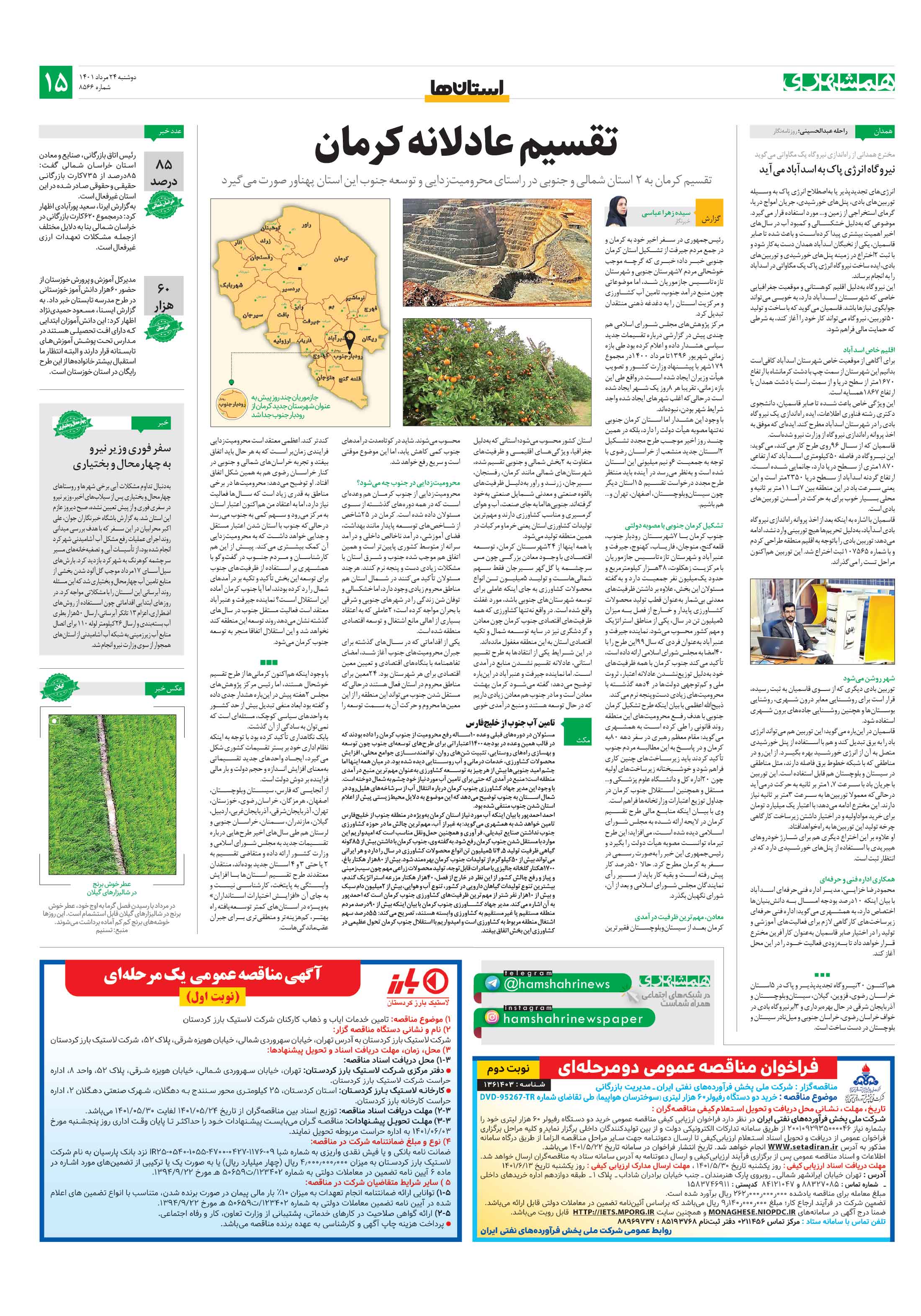 تقسیم کرمان به 2 استان شمالی و جنوبی در راستای محرومیتزدایی و توسعه جنوب این استان پهناور صورت میگیرد