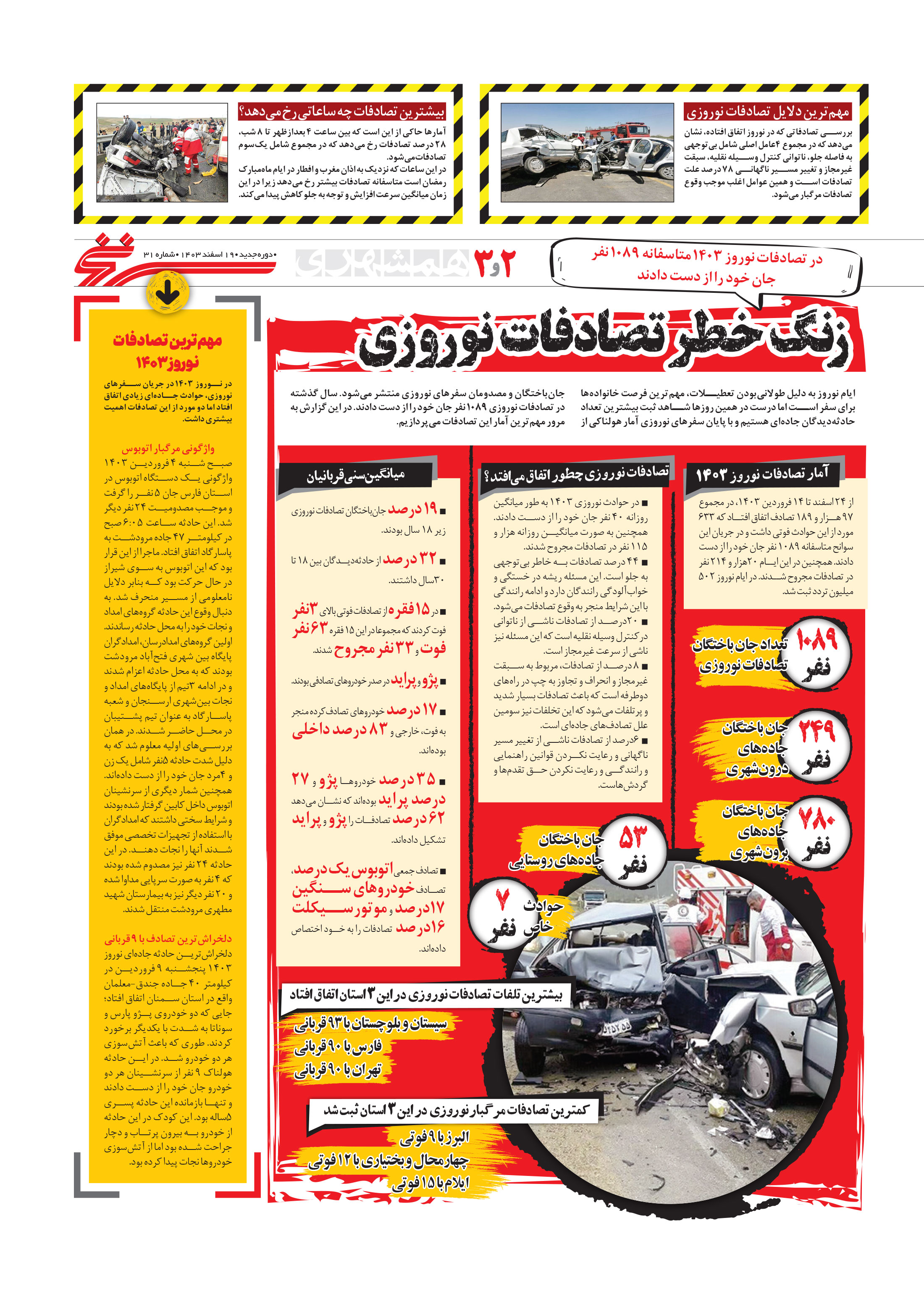 ايام نوروز به دليل طولانيبودن تعطيلات، مهمترين فرصت خانوادهها براي سفر است اما درست در همين روزها شاهد ثبت بيشترين تعداد حادثهديدگان جادهاي هستيم و با پايان سفرهاي نوروزي آمار هولناكي از جانباختگان و مصدومان سفرهاي نوروزي منتشر ميشود.