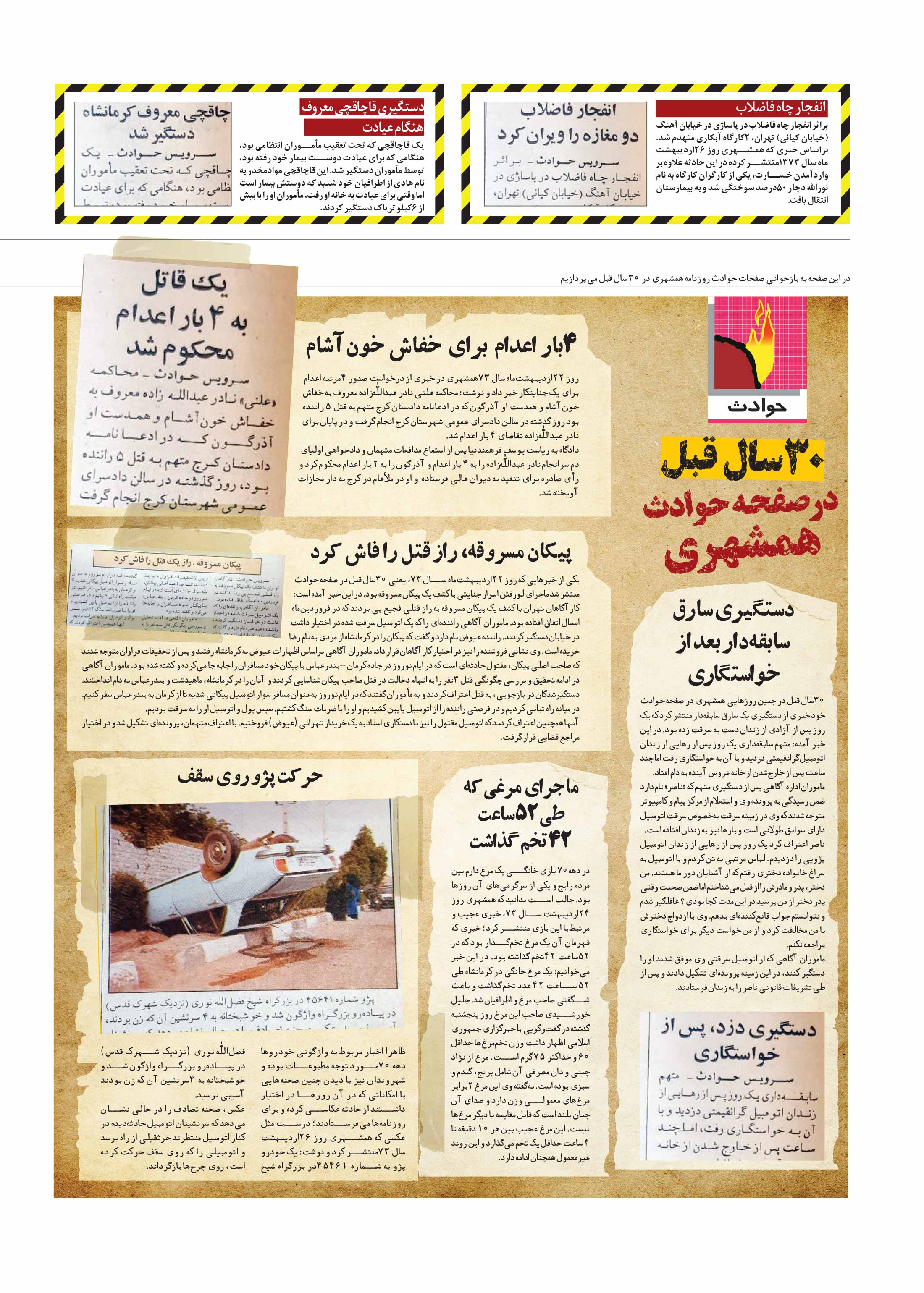 30سال قبل در چنین روزهایی همشهری در صفحه حوادث خود خبری از دستگیری یک سارق سابقهدار منتشر کرد که یک روز پس از آزادی از زندان دست به سرقت زده بود.