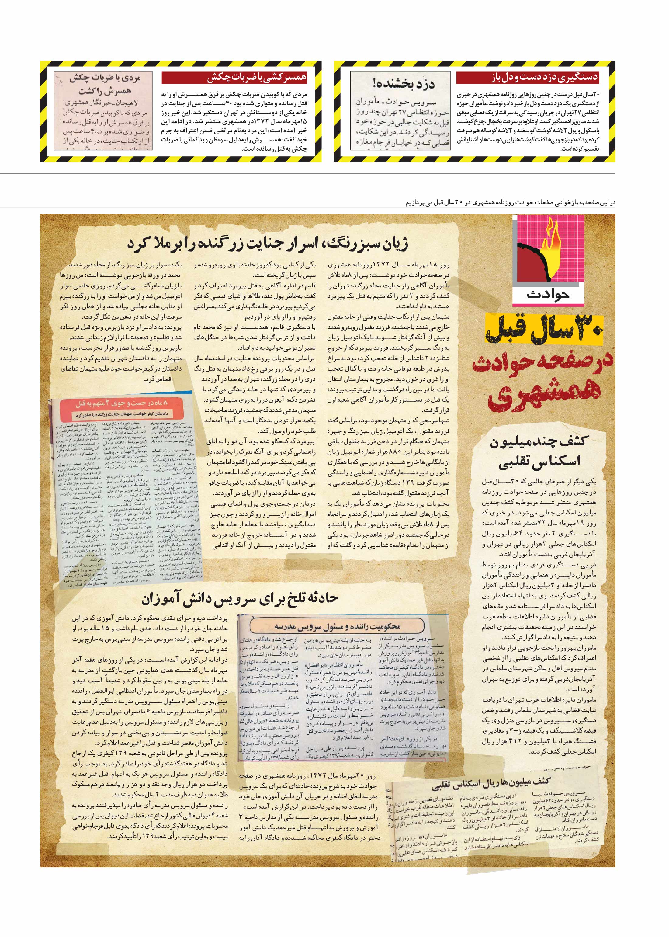 در این صفحه به بازخوانی صفحات حوادث روزنامه همشهری در 30 سال قبل میپردازیم