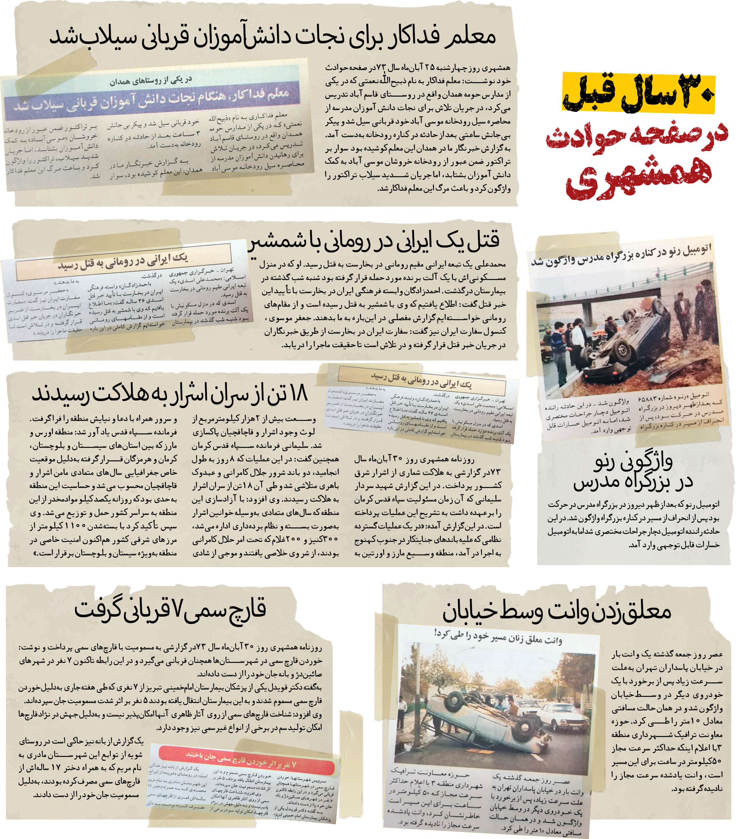 در این صفحه به بازخوانی صفحات حوادث روزنامه همشهری در 30 سال قبل میپردازیم