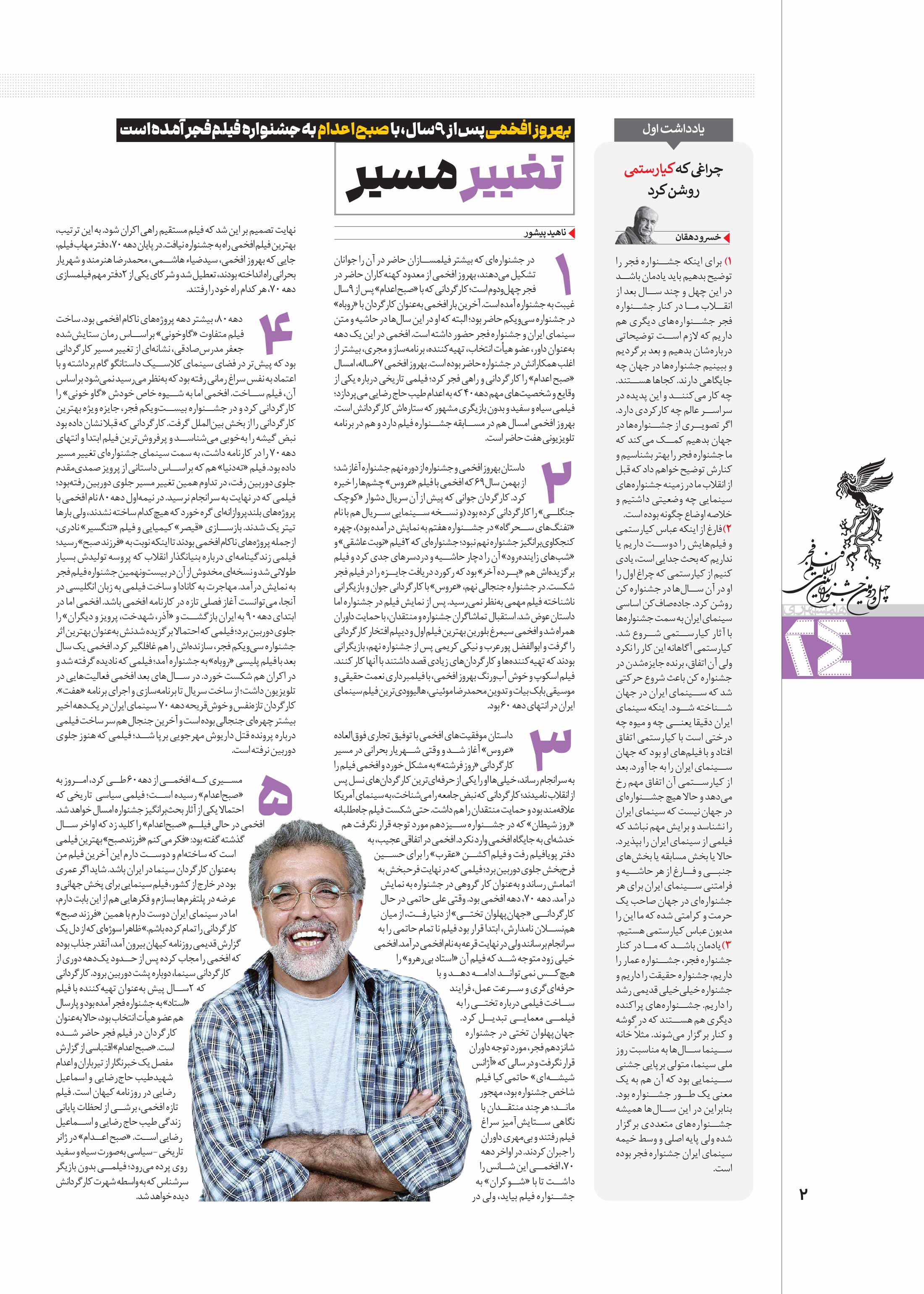 در جشنوارهای که بیشتر فیلمسازان حاضر در آن را جوانان تشکیل میدهند، بهروز افخمی از معدود کهنهکاران حاضر در فجر چهلودوم است؛ کارگردانی که با «صبح اعدام» پس از ۹سال غیبت به جشنواره آمده است.