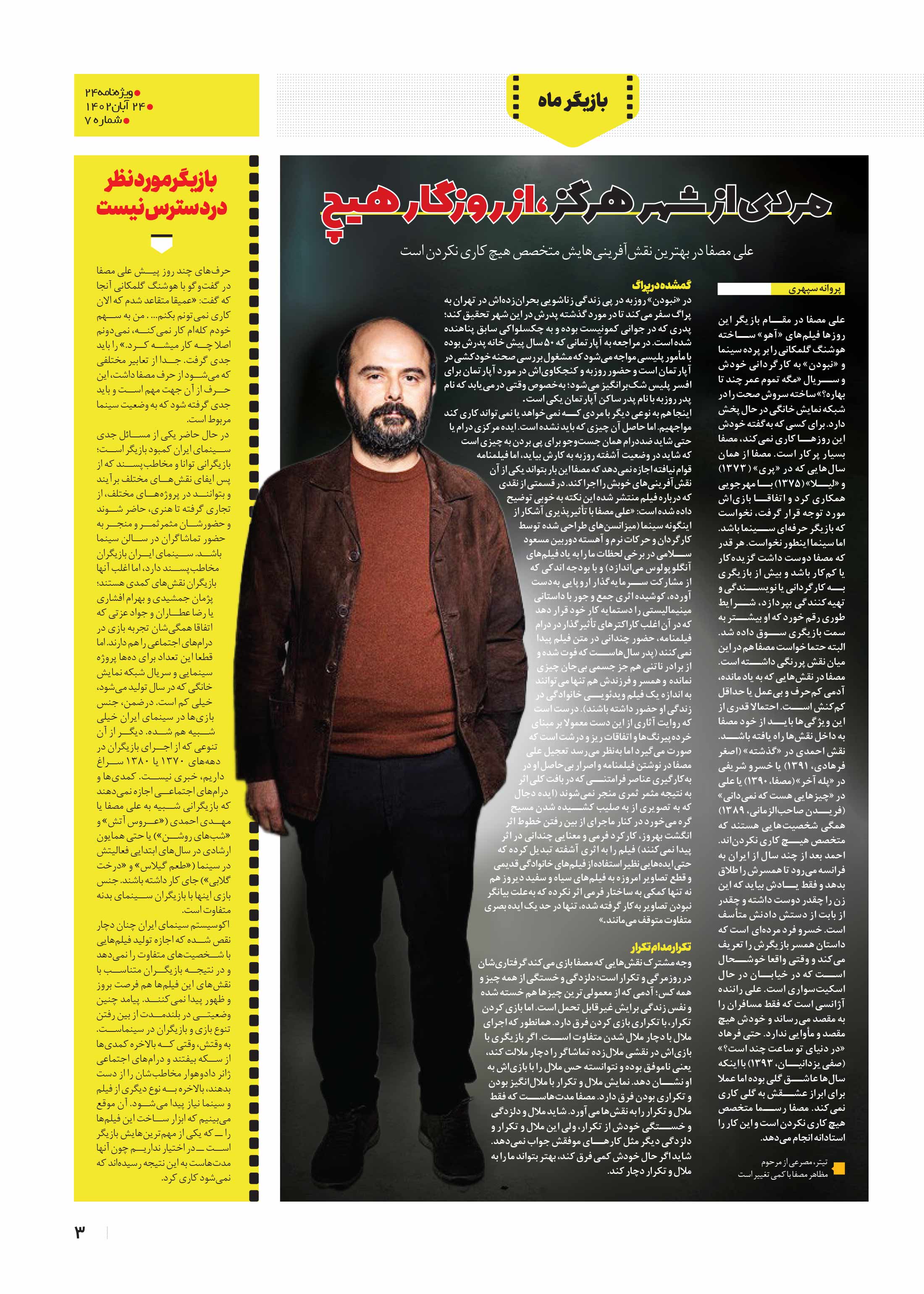علی مصفا در بهترین نقشآفرینیهایش متخصص هیچ کاری نکردن است