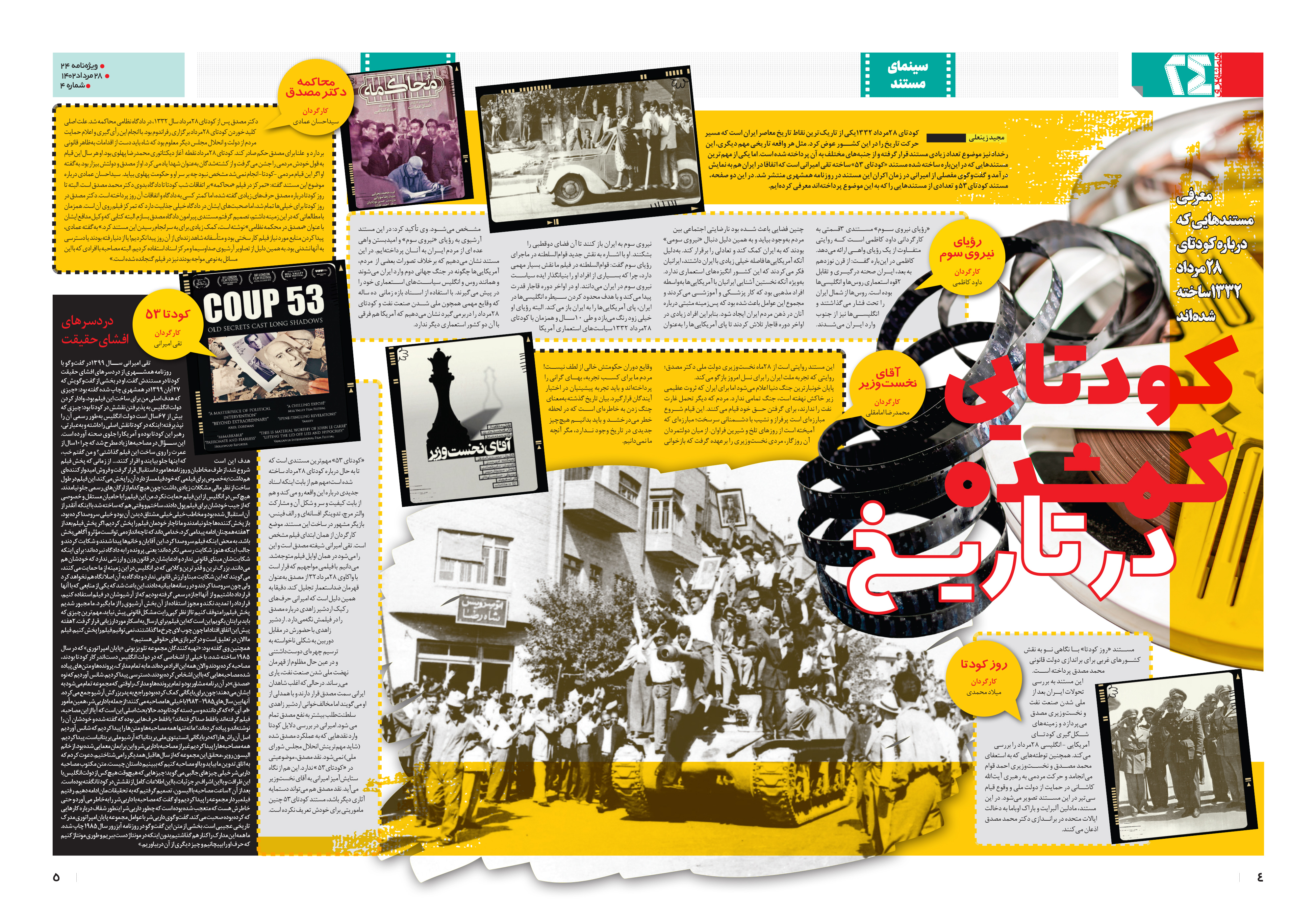 کودتای 28مرداد 1332یکی از تاریکترین نقاط تاریخ معاصر ایران است که مسیر حرکت تاریخ را در این کشور عوض کرد. مثل هر واقعه تاریخی مهم دیگری، این رخداد نیز موضوع تعداد زیادی مستند قرار گرفته و از جنبههای مختلف به آن پرداخته شده است.