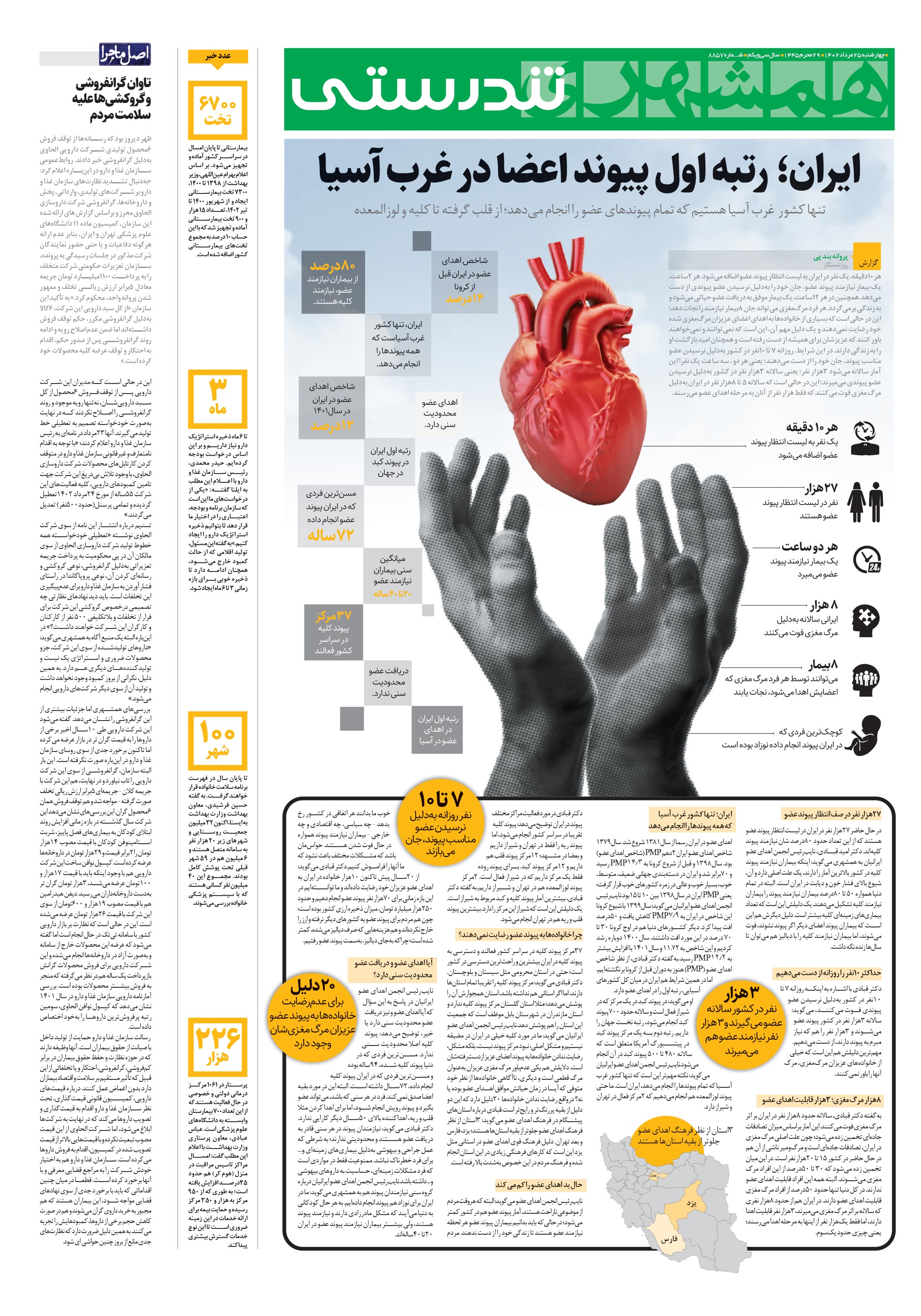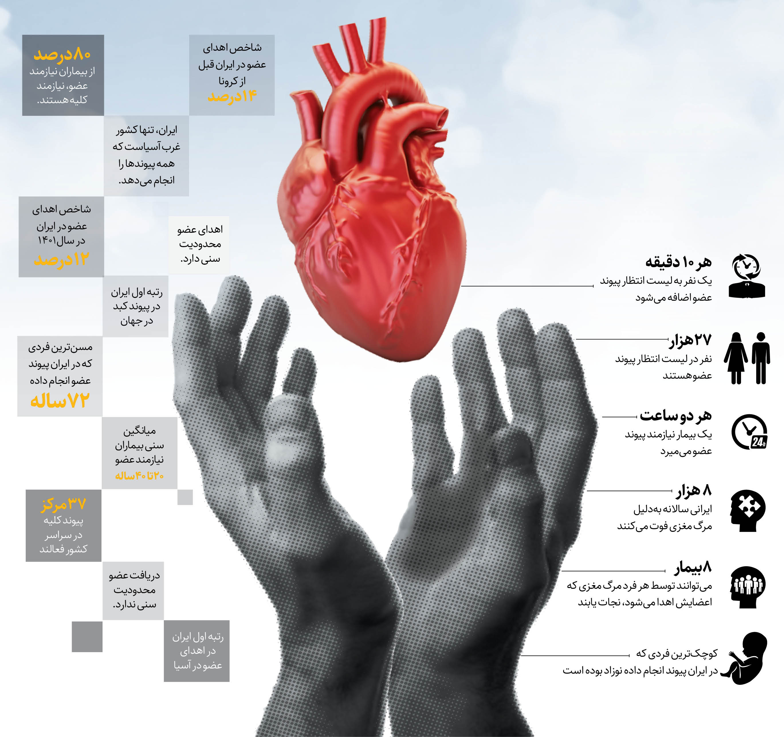هر ۱۰دقیقه، یک نفر در ایران به لیست انتظار پیوند عضو اضافه میشود. هر ۲ساعت، یک بیمار نیازمند پیوند عضو، جان خود را بهدلیل نرسیدن عضو پیوندی از دست میدهد.