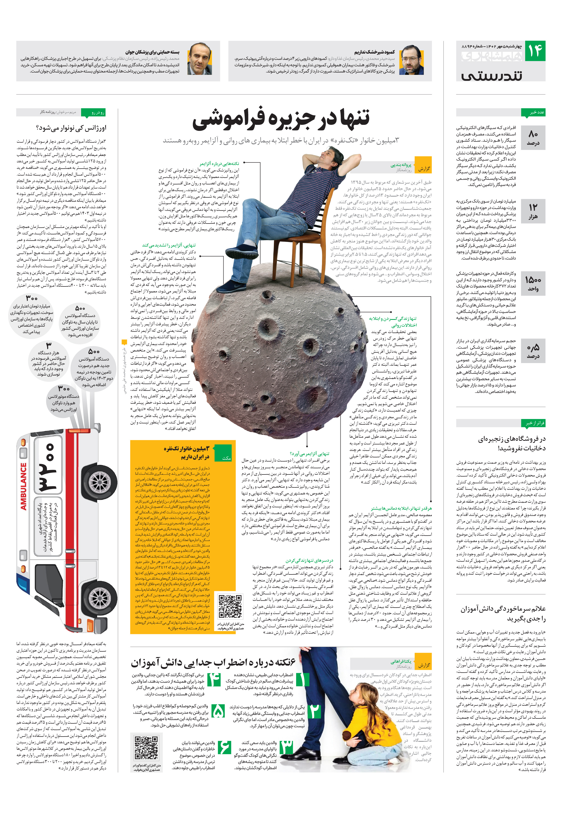 3میلیون خانوار «تکنفره» در ایران با خطر ابتلا به بیماری های روانی و آلزایمر روبهرو هستند