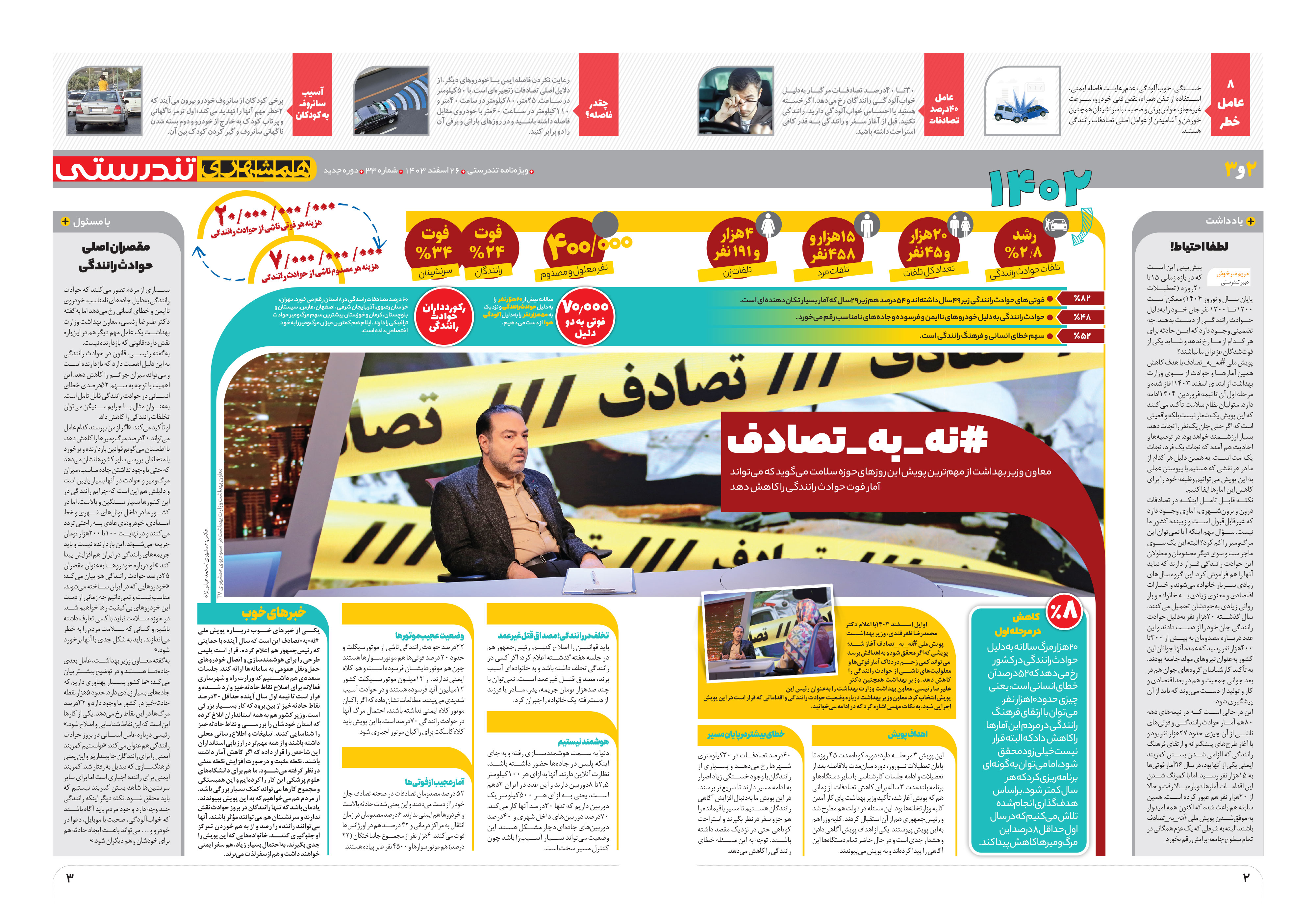 اوایل اسفند 1403با اعلام دکتر محمدرضا ظفرقندی، وزیر بهداشت پویش ملی #نه_به_تصادف آغاز شد؛ پویشی که اگر محقق شود و به اهدافش برسد می‌تواند کمی زخم دردناک آمار فوتی‌ها و معلولیت‌های ناشی از حوادث رانندگی را کاهش دهد.