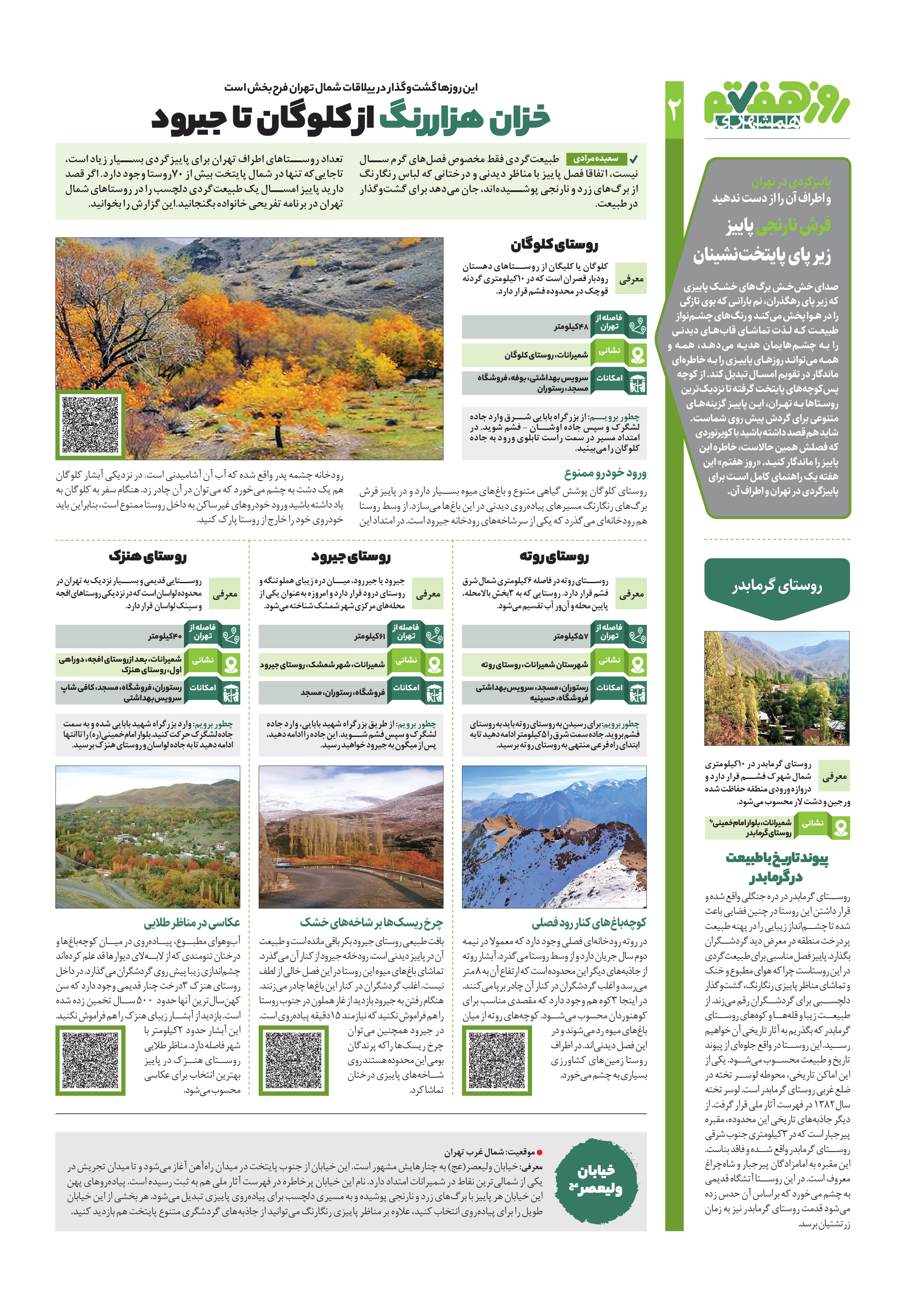 طبیعتگردی فقط مخصوص فصلهای گرم سال نیست، اتفاقا فصل پاییز با مناظر دیدنی و درختانی که لباس رنگارنگ از برگهای زرد و نارنجی پوشیدهاند، جان میدهد برای گشتوگذار درطبیعت.