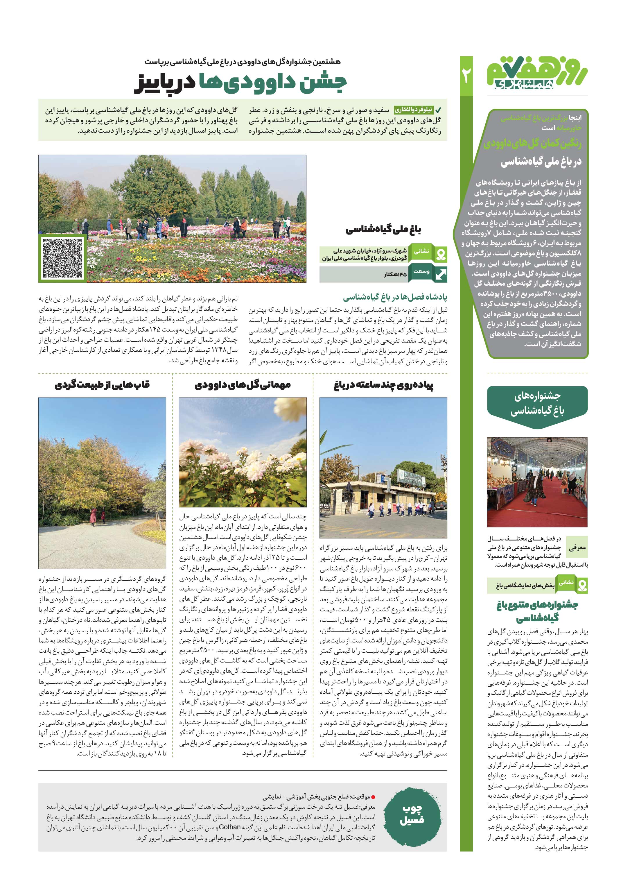 سفید و صورتی و سرخ، نارنجی و بنفش و زرد. عطر گلهای داوودی این روزها باغ ملی گیاهشناسی را برداشته و فرشی رنگارنگ پیش پای گردشگران پهن شده است.
