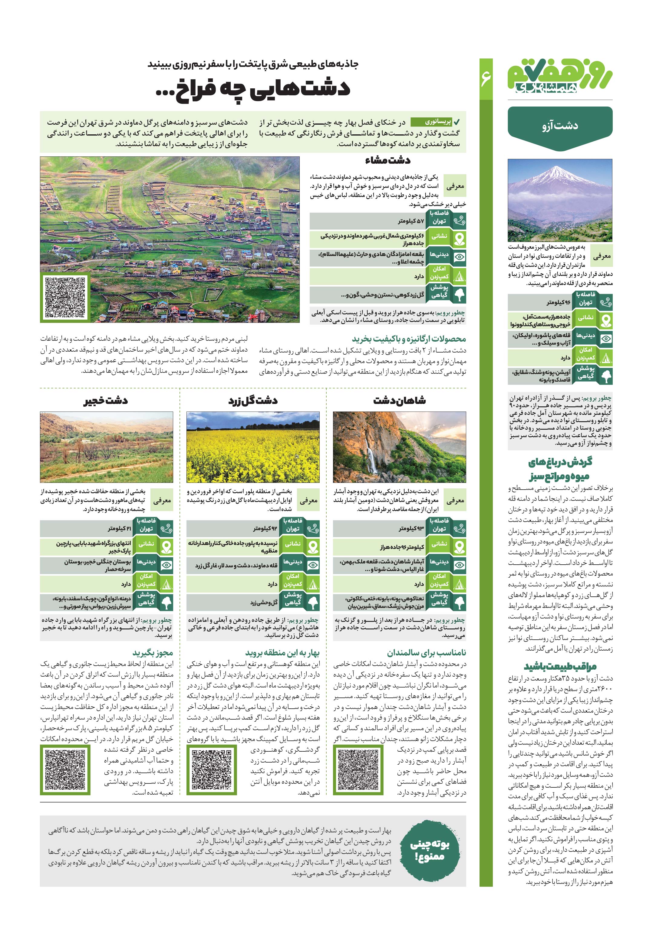 در خنکای فصل بهار چه چیزی لذتبخشتر از گشت وگذار در دشتها و تماشای فرش رنگارنگی که طبیعت با سخاوتمندی بر دامنه کوهها گسترده است.