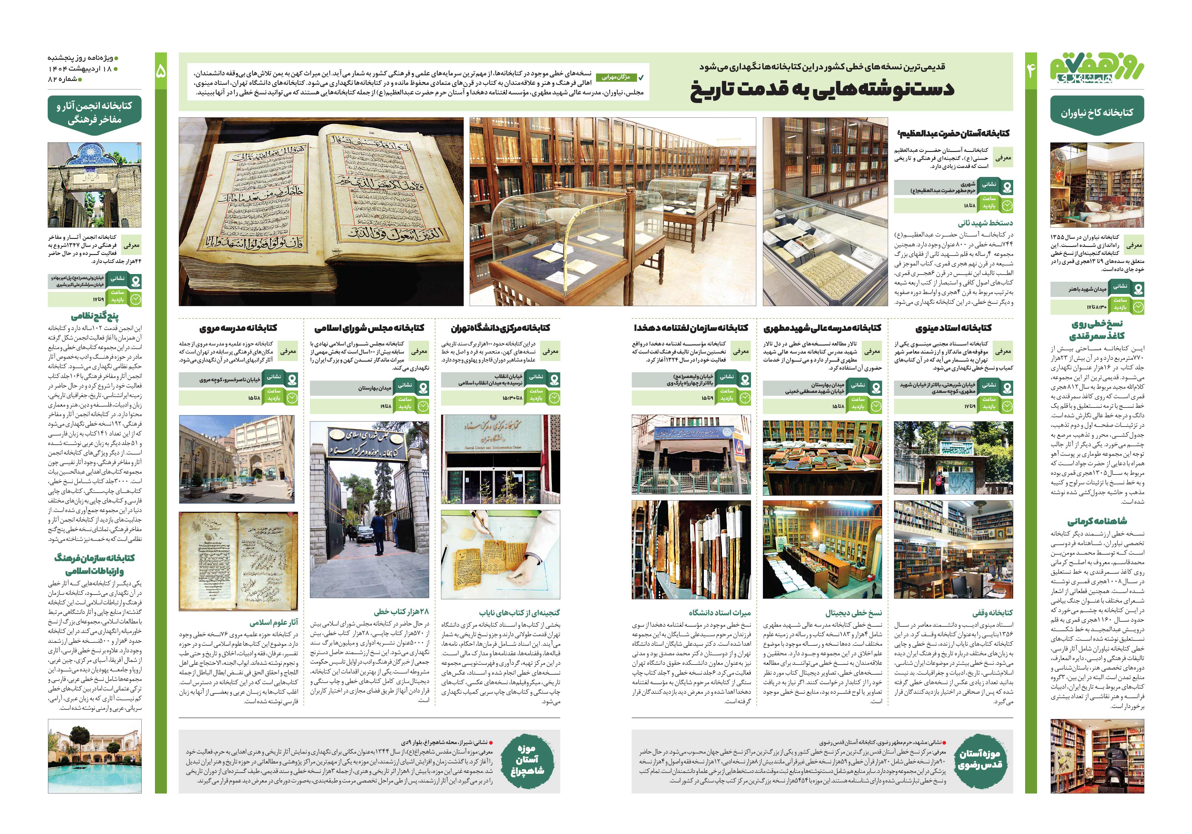 نسخههای خطی موجود در کتابخانهها، از مهمترین سرمایههای علمی و فرهنگی کشور به شمار میآید.