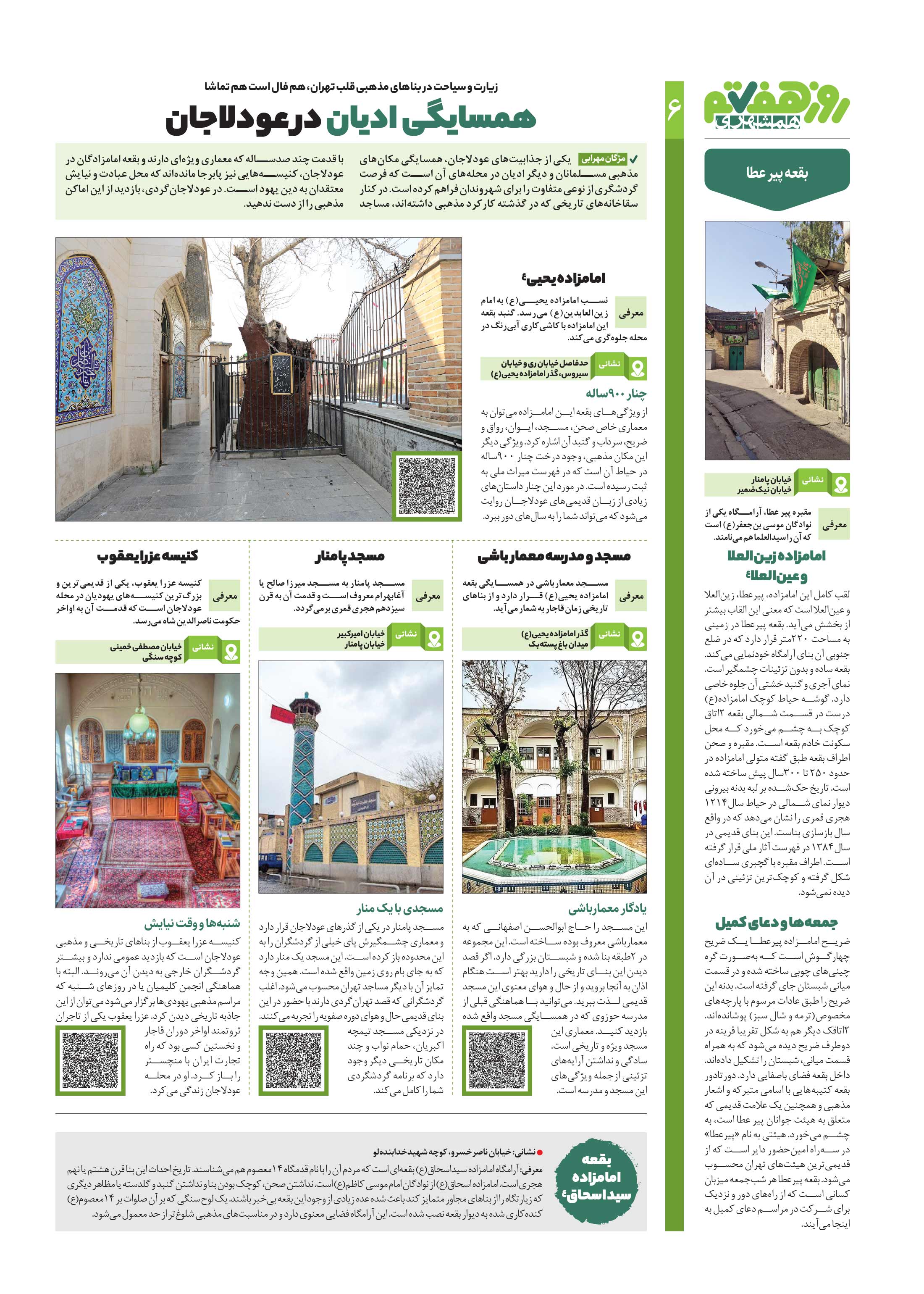 یکی از جذابیتهای عودلاجان، همسایگی مکانهای مذهبی مسلمانان و دیگر ادیان در محلههای آن است که فرصت گردشگری از نوعی متفاوت را برای شهروندان فراهم کرده است.