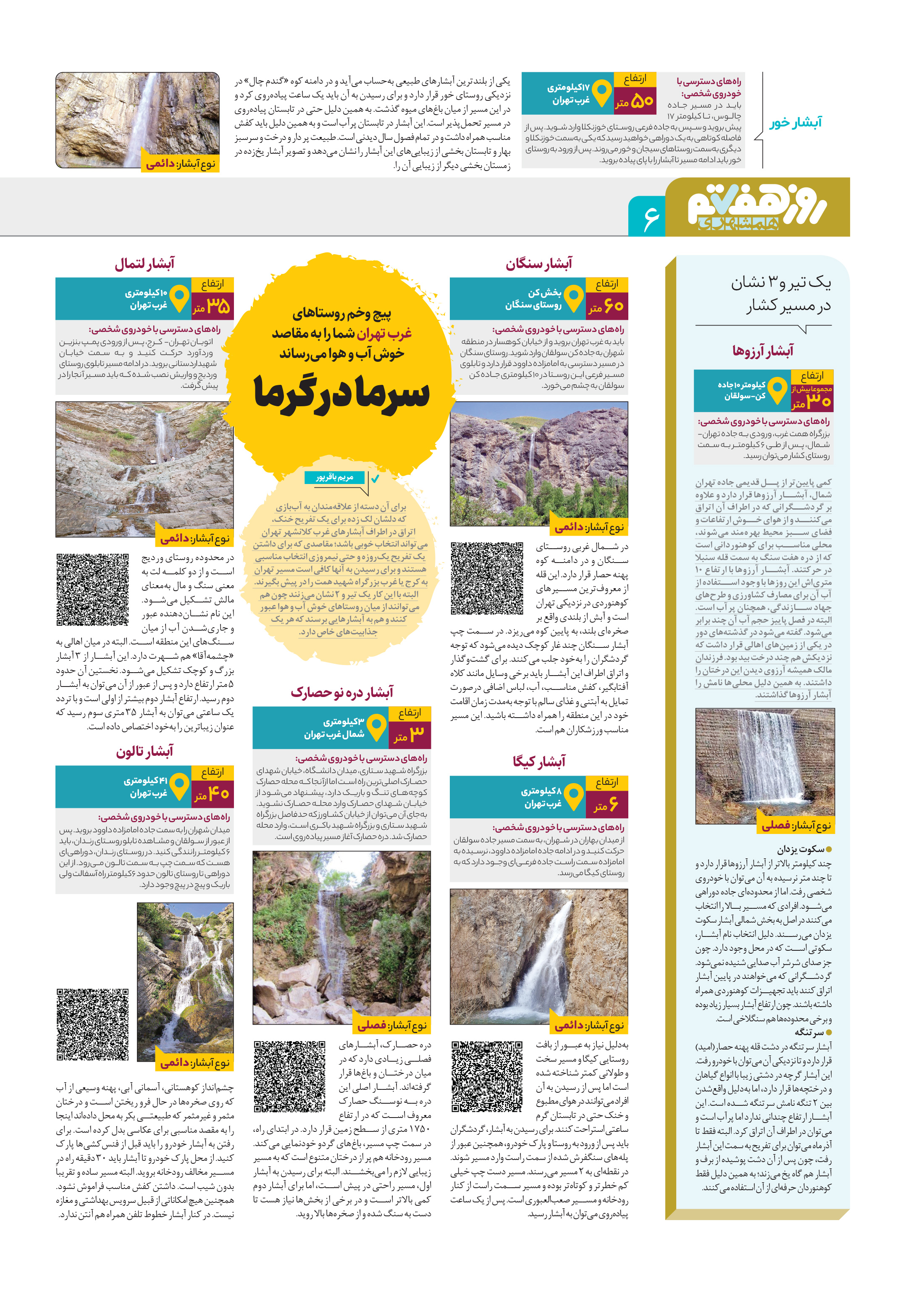 برای آن دسته از علاقهمندان به آببازی که دلشان لک زده برای یک تفریح خنک، اتراق در اطراف آبشارهای غرب کلانشهر تهران میتواند انتخاب خوبی باشد.