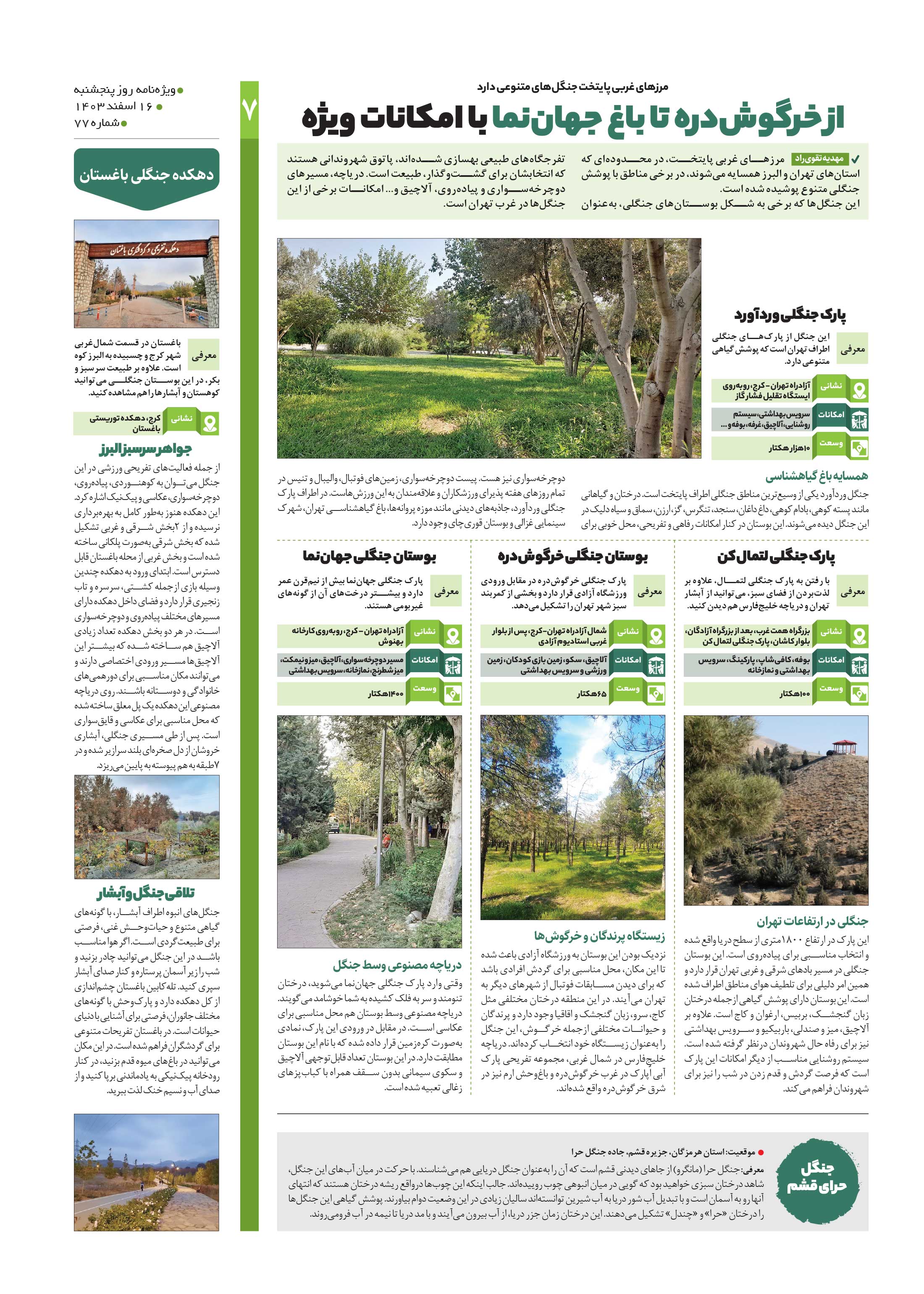 از خرگوشدره تا باغ جهاننما با امکانات ویژه