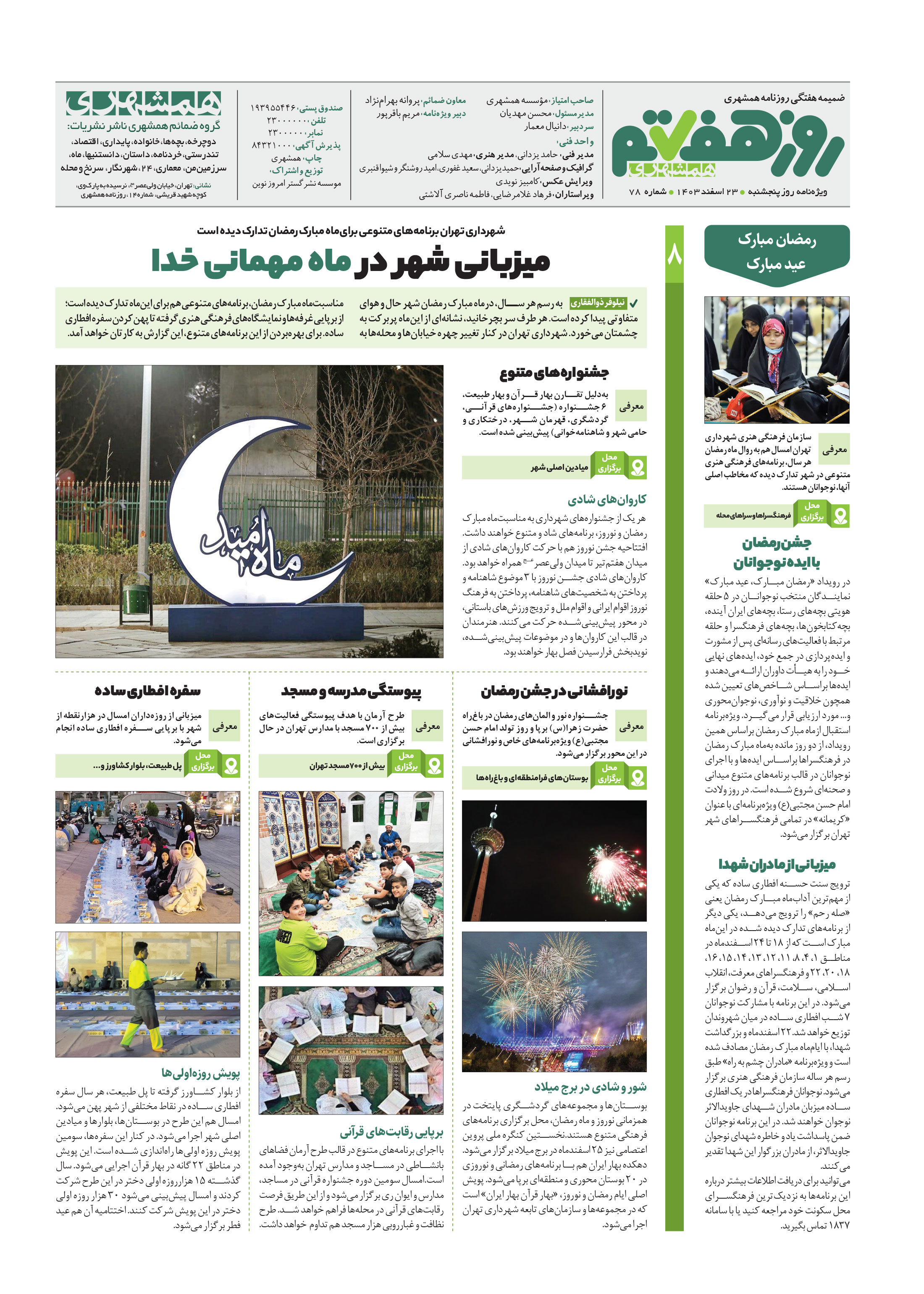 میزبانی شهر در ماه مهمانی خدا