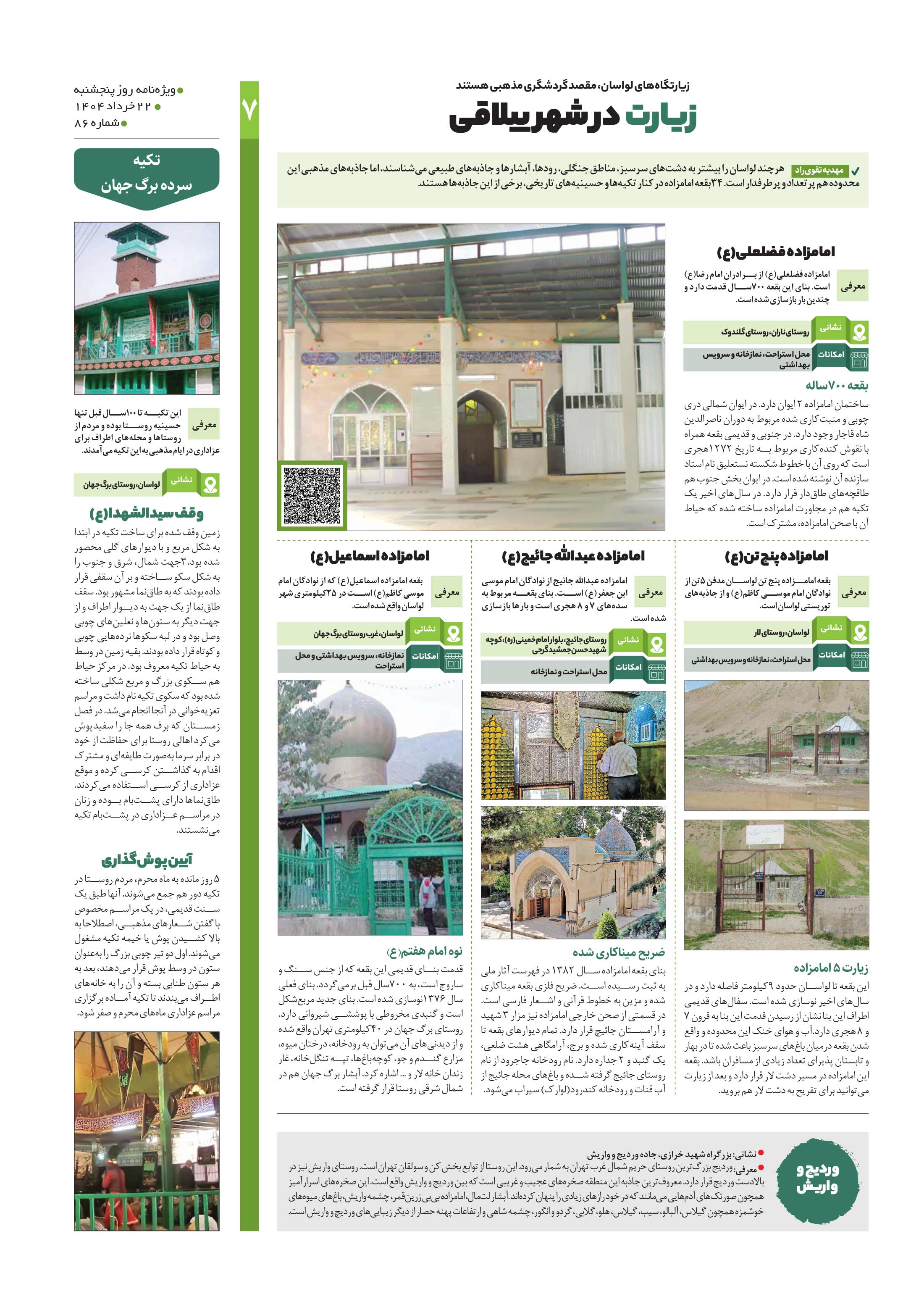 هرچند لواسان را بیشتر به دشتهای سرسبز، مناطق جنگلی، رودها، آبشارها و جاذبههای طبیعی میشناسند، اما جاذبههای مذهبی این محدوده هم پرتعداد و پرطرفدار است.