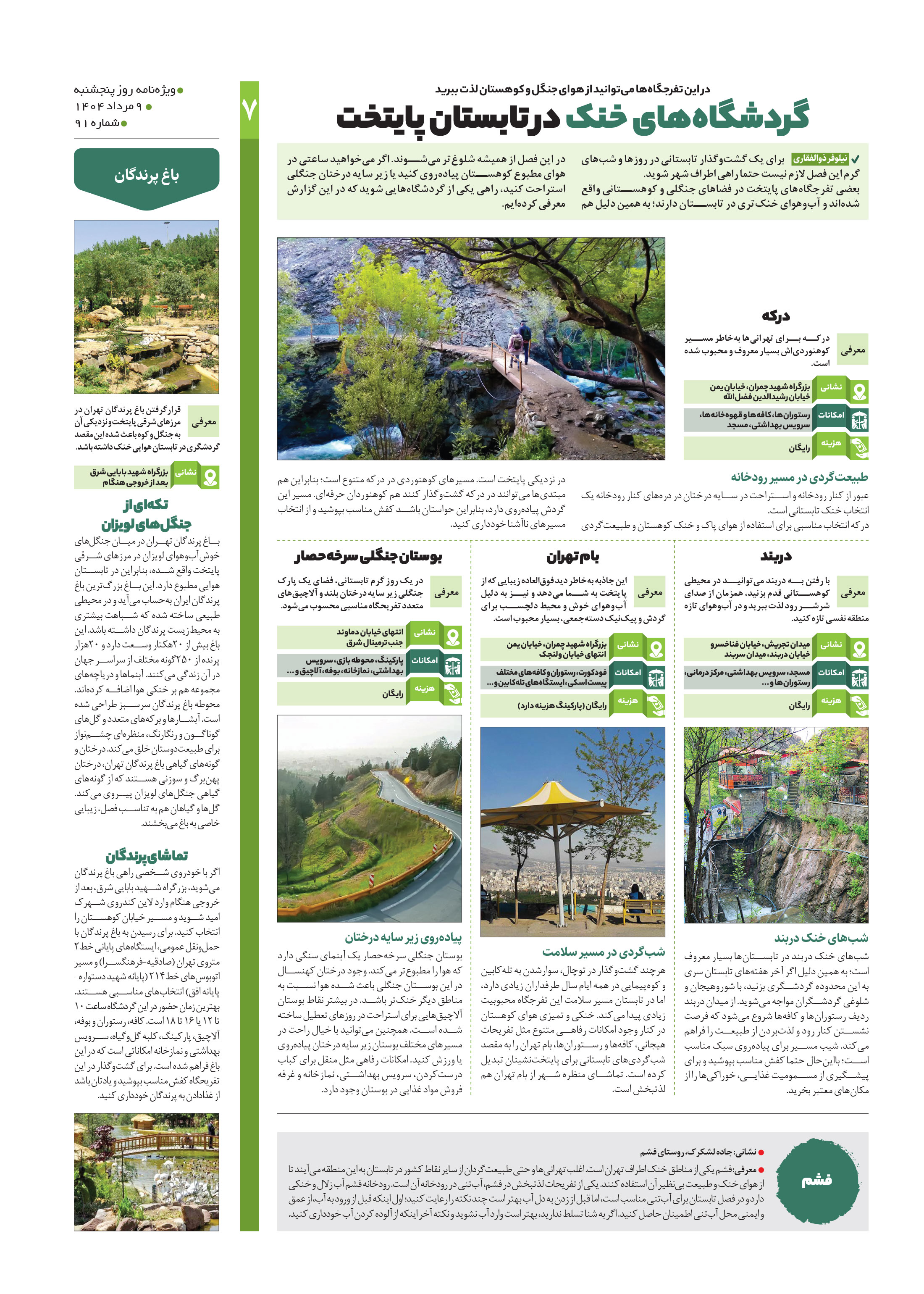گردشگاههای خنک در تابستان پایتخت
