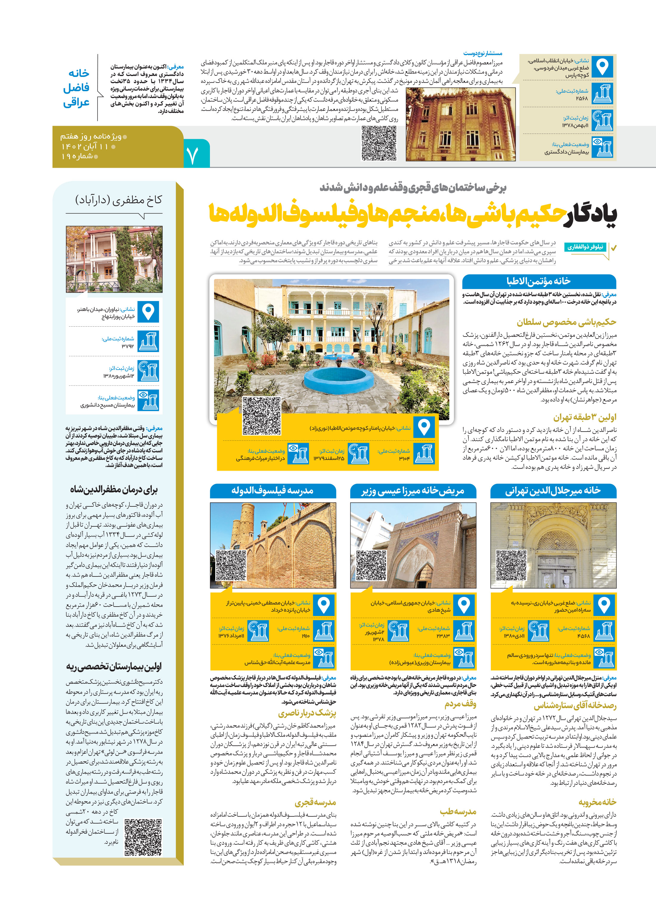 یادگار حکیمباشیها، منجمها و فیلسوفالدولهها