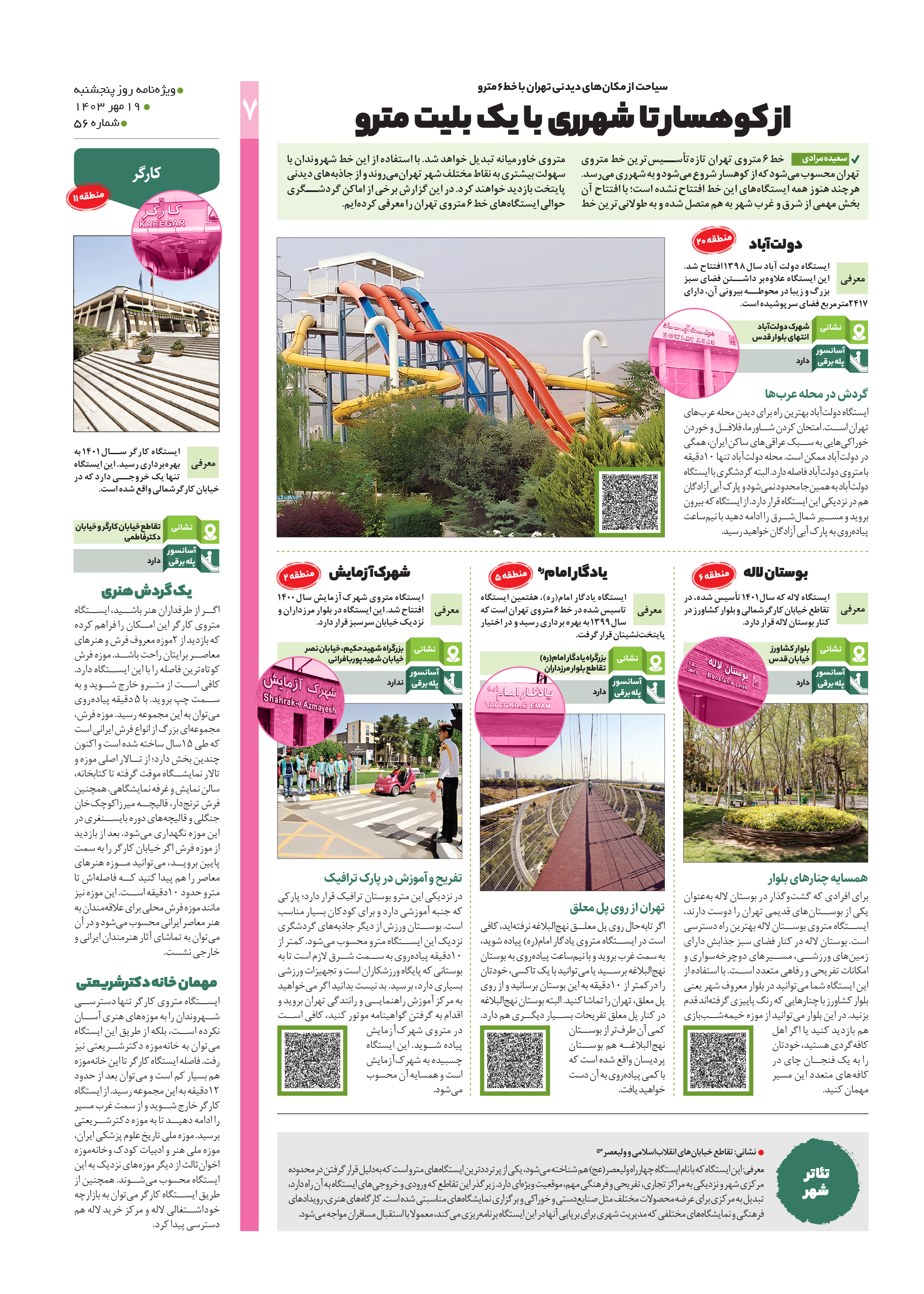 خط6 متروی تهران تازهتأسیسترین خط متروی تهران محسوب میشود که از کوهسار شروع میشود و به شهرری میرسد.