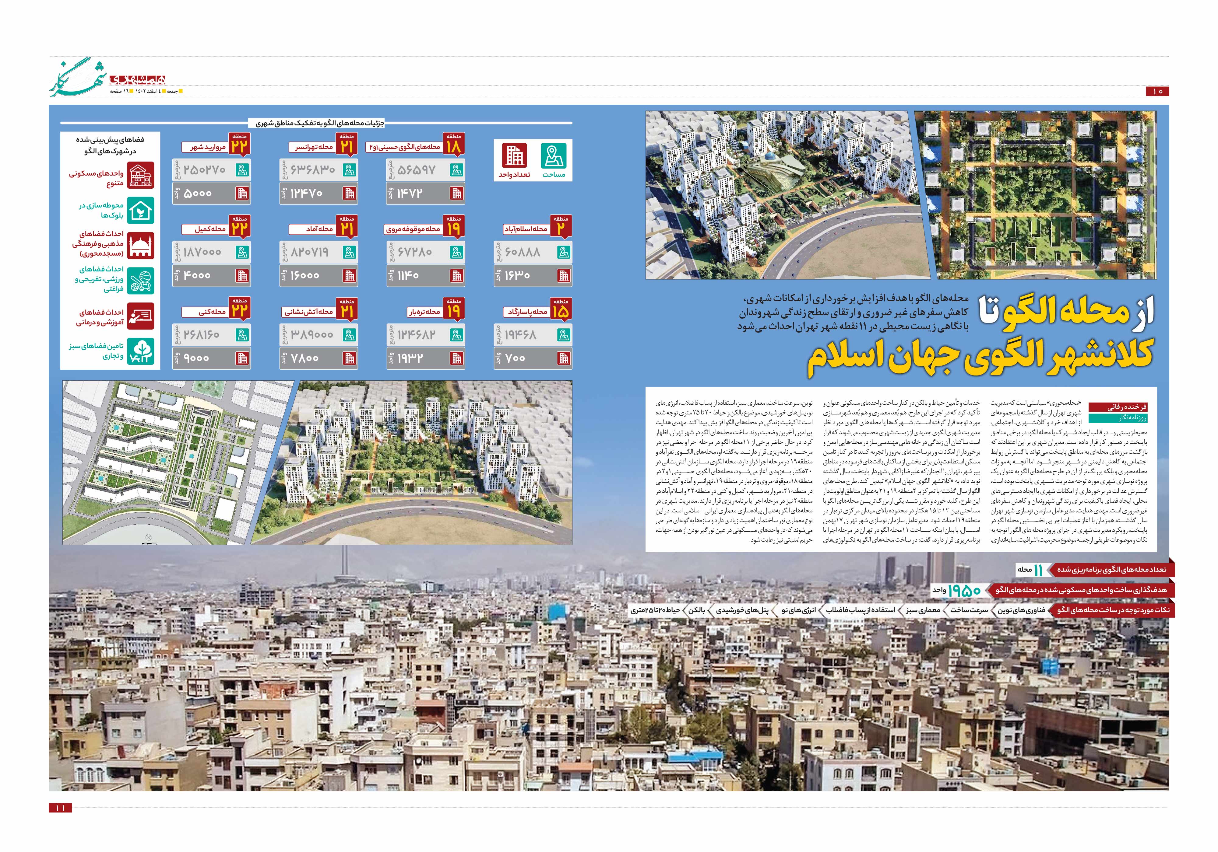 محلههای الگو با هدف افزایش برخورداری از امکانات شهری، کاهش سفرهای غیر ضروری و ارتقای سطح زندگی شهروندان با نگاهی زیست محیطی در 11 نقطه شهر تهران احداث میشود