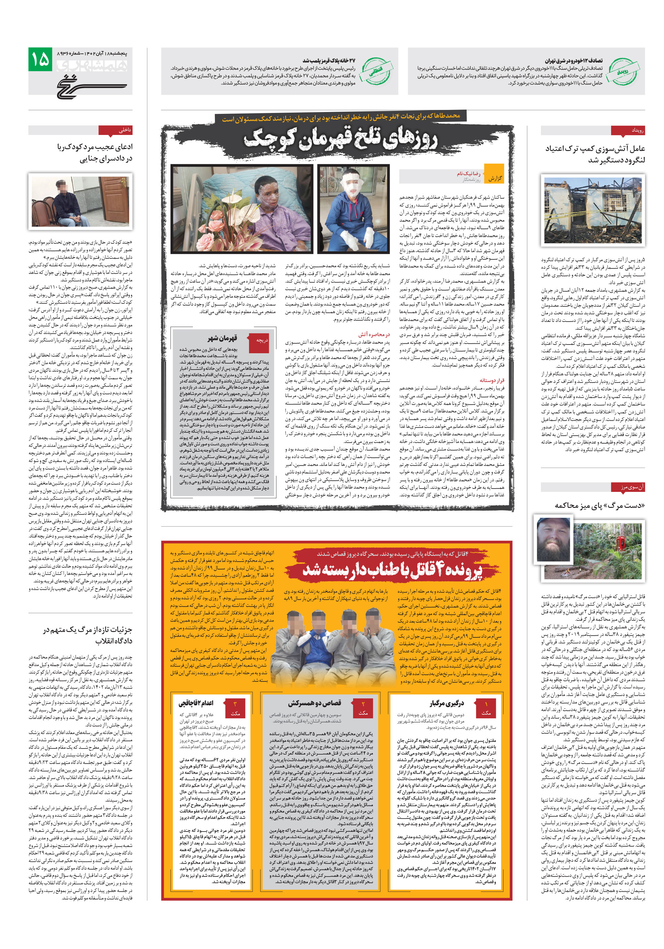 4قاتل که حکم قصاصشان تأیید شده و به مرحله اجرا رسیده بود، سحرگاه دیروز در زندان قزلحصار پای چوبه دار رفتند و قصاص شدند. به گزارش همشهری، نخستین اجرای حکم، اعدام قاچاقچی بینالمللی شیشه بود که مورد عفو قرار گرفته و بعد از 10سال از زندان آزاد شده بود اما 48ساعت بعد دریک درگیری دست به جنایت زده بود.