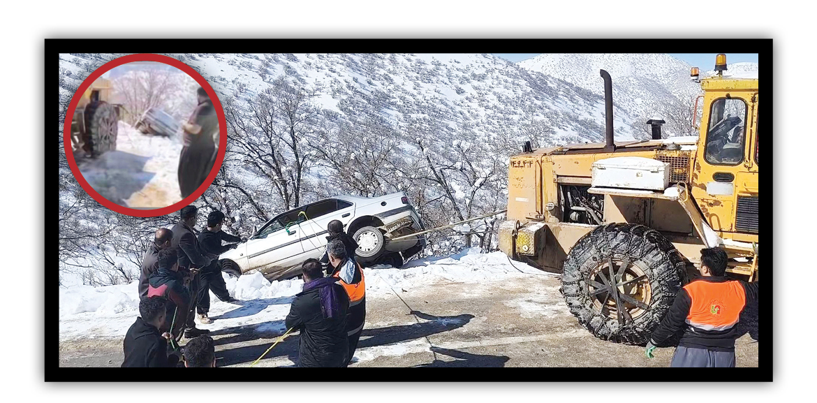 نیمی از خودروی 405در سراشیبی دره و نیم دیگرش در جاده قرار گرفته بود. کوچکترین حرکتی میتوانست باعث سقوط خودرو به اعماق دره برف گرفته و مرگ حتمی هر 4سرنشین آن شود اما درست در آخرین لحظات تیم راهداری مثل فرشته نجات از راه رسید و از حادثهای هولناک جلوگیری کرد.