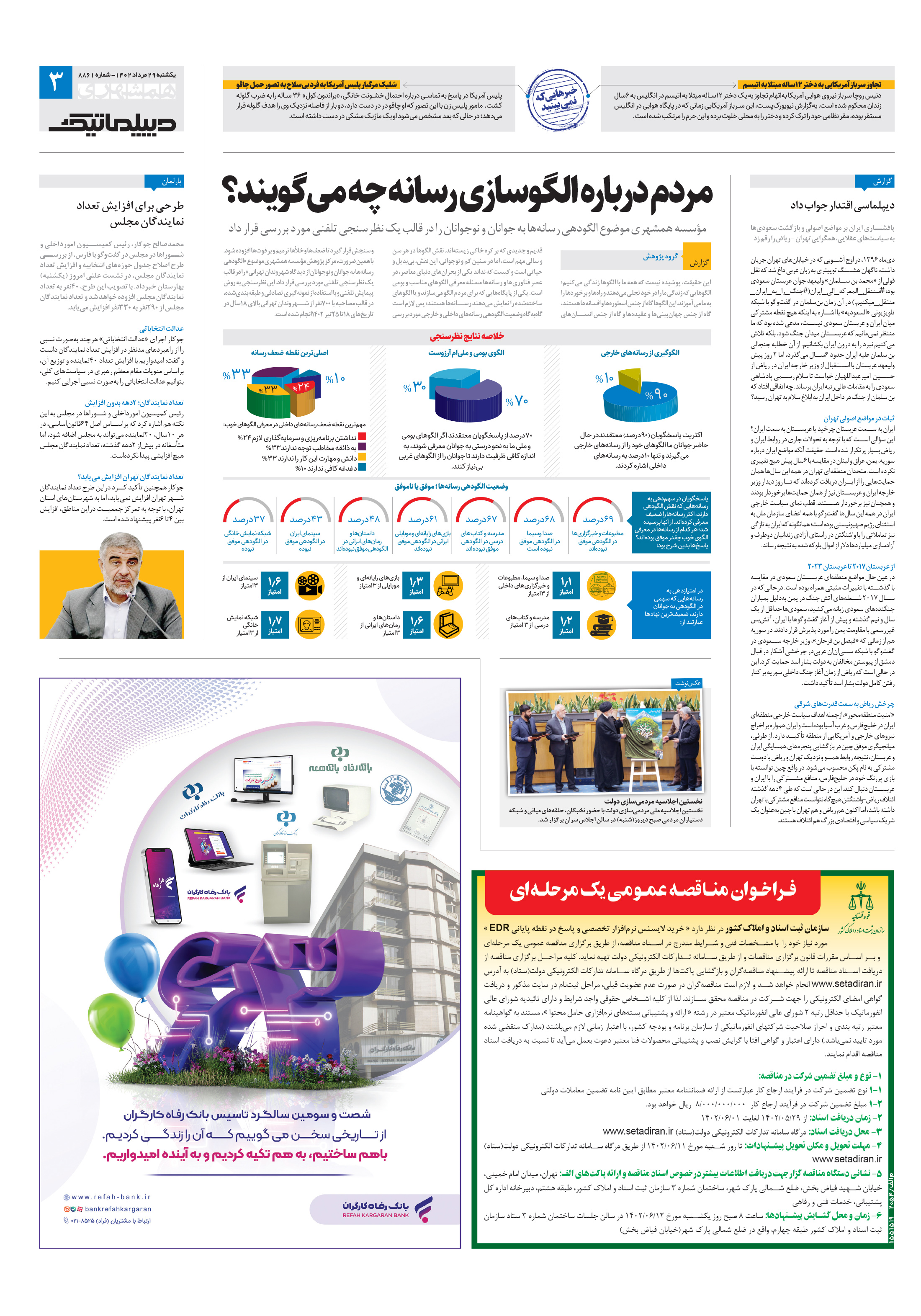 مؤسسه همشهری موضوع الگودهی رسانهها به جوانان و نوجوانان را در قالب یک نظرسنجی تلفنی مورد بررسی قرار داد