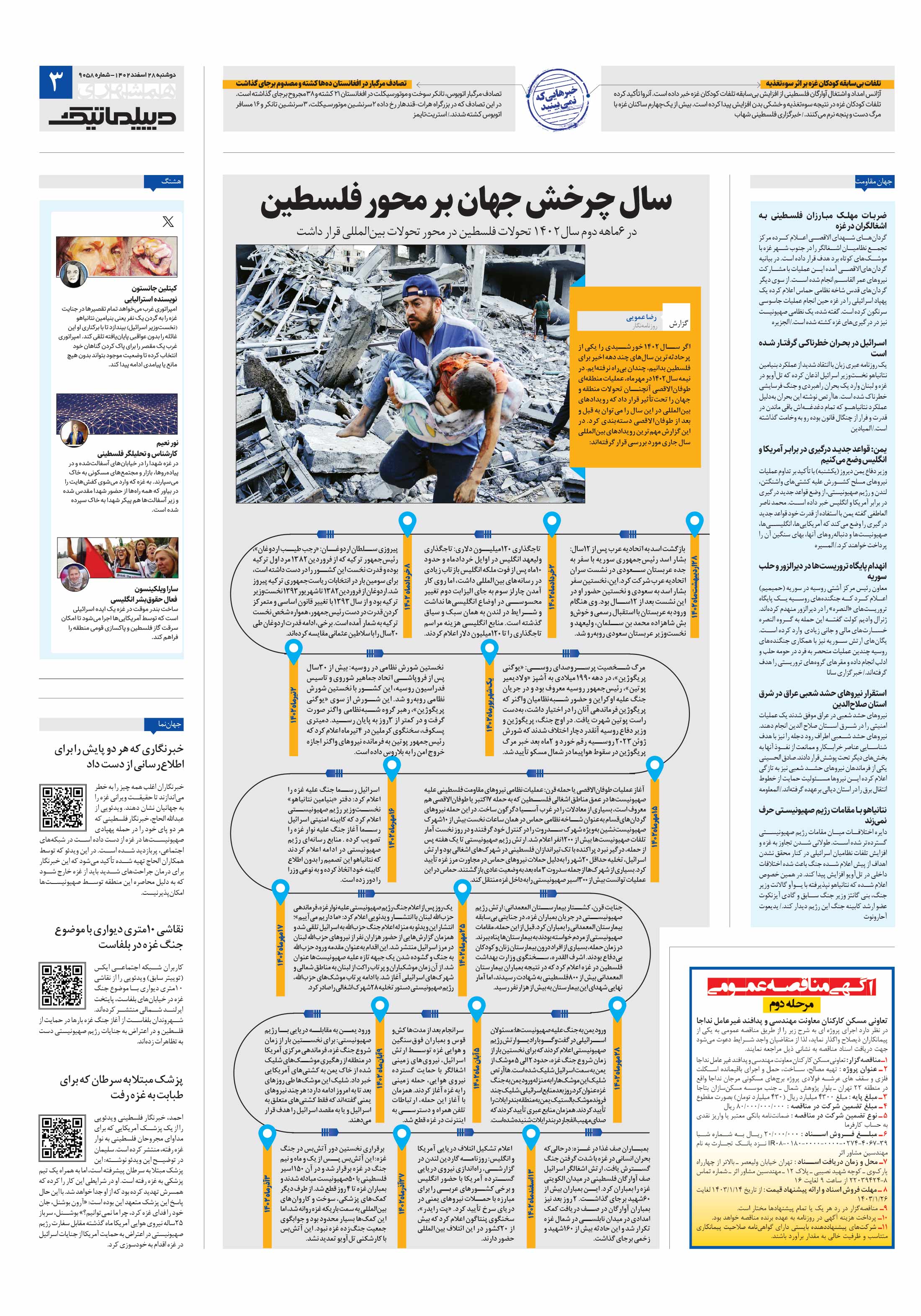 اگر سال1402 خورشیدی را یکی از پرحادثهترین سالهای چند دهه اخیر برای فلسطین بدانیم، چندان بیراه نرفتهایم.
