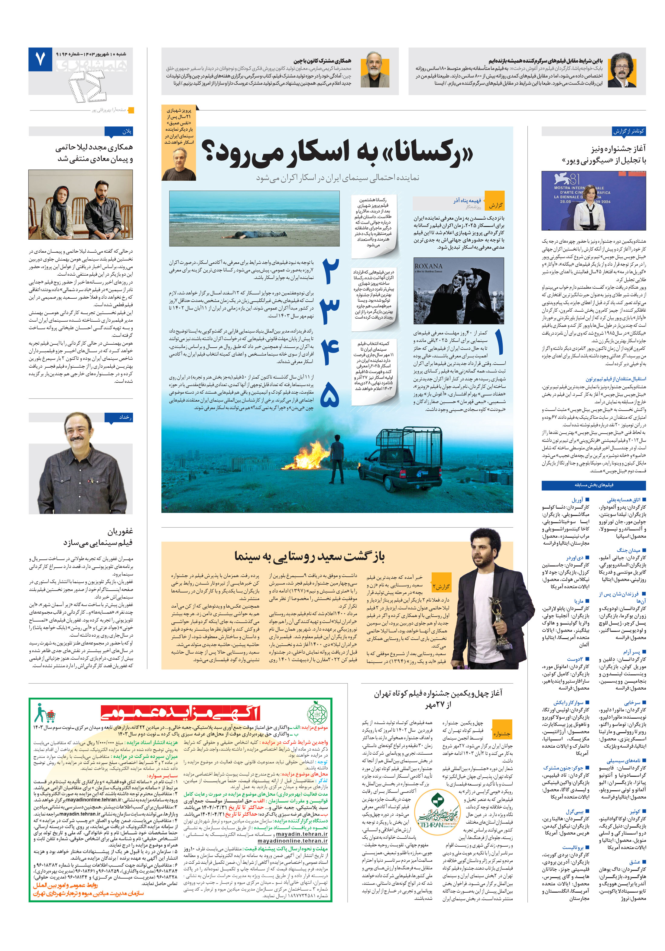 با نزدیک شدن به زمان معرفی نماینده ایران برای اسکار ۲۰۲۵، زمان اکران فیلم رکسانا به کارگردانی پرویز شهبازی اعلام شد تا این فیلم با توجه به حضورهای جهانیاش به جدیترین مدعی معرفی به اسکار تبدیل شود.