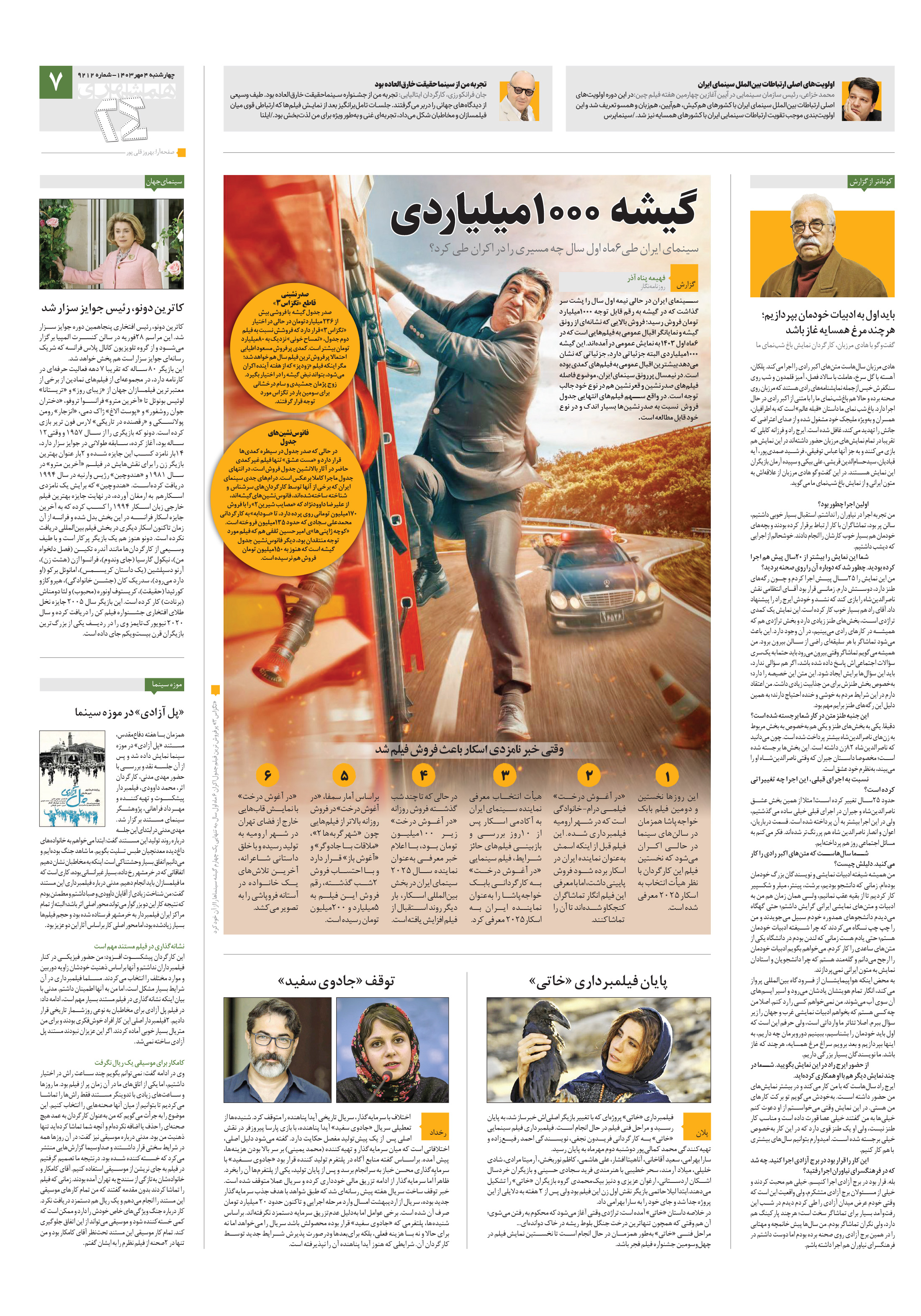 سینمای ایران در حالی نیمه اول سال را پشت سر گذاشت که در گیشه به رقم قابل توجه ۱۰۰۰میلیارد تومان فروش رسید؛ فروش بالایی که نشانهای از رونق گیشه و نمایانگر اقبال عمومی به فیلمهایی است که در 6ماه اول 1403 به نمایش عمومی درآمدهاند.