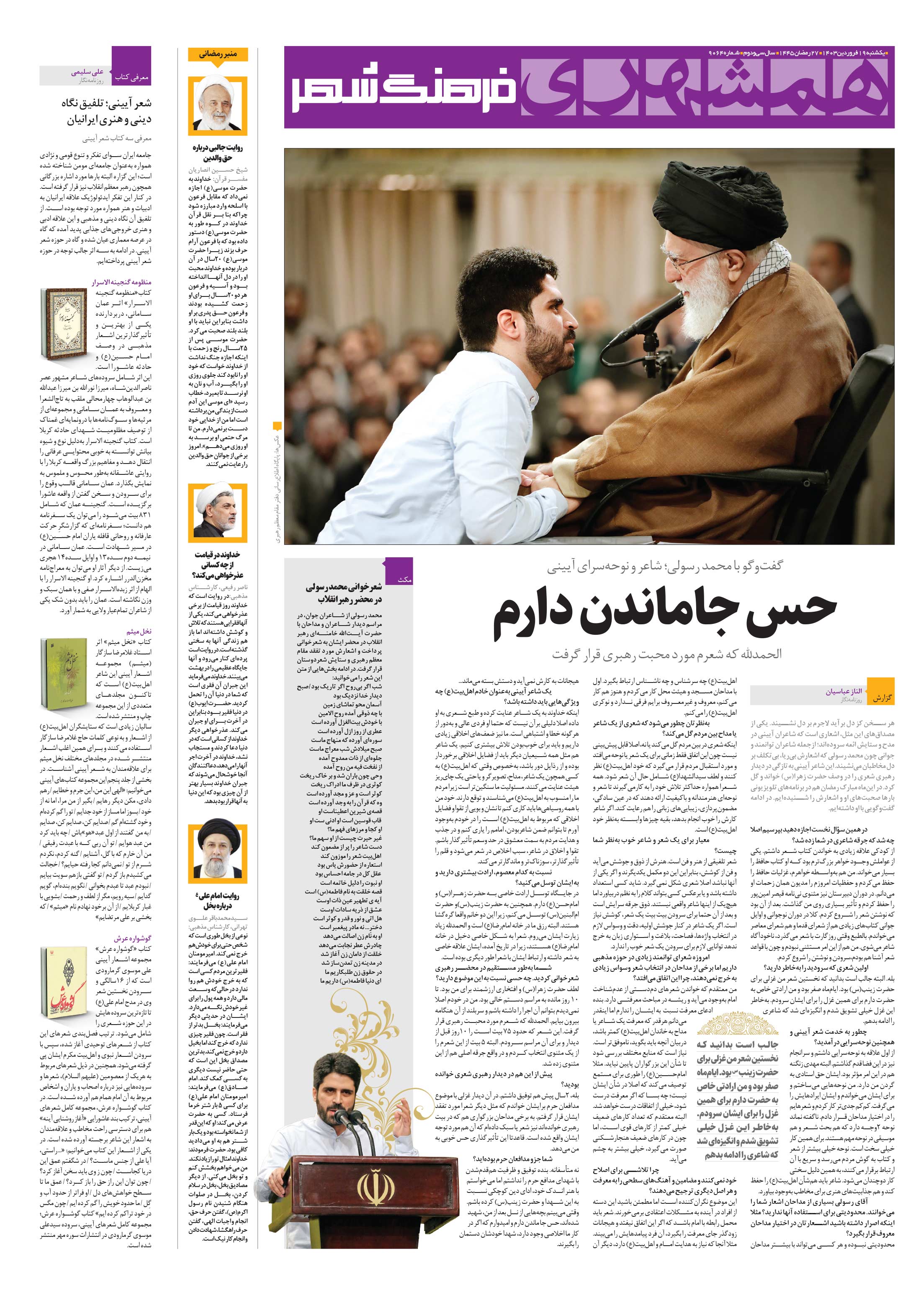 الحمدلله که شعرم مورد محبت رهبری قرار گرفت