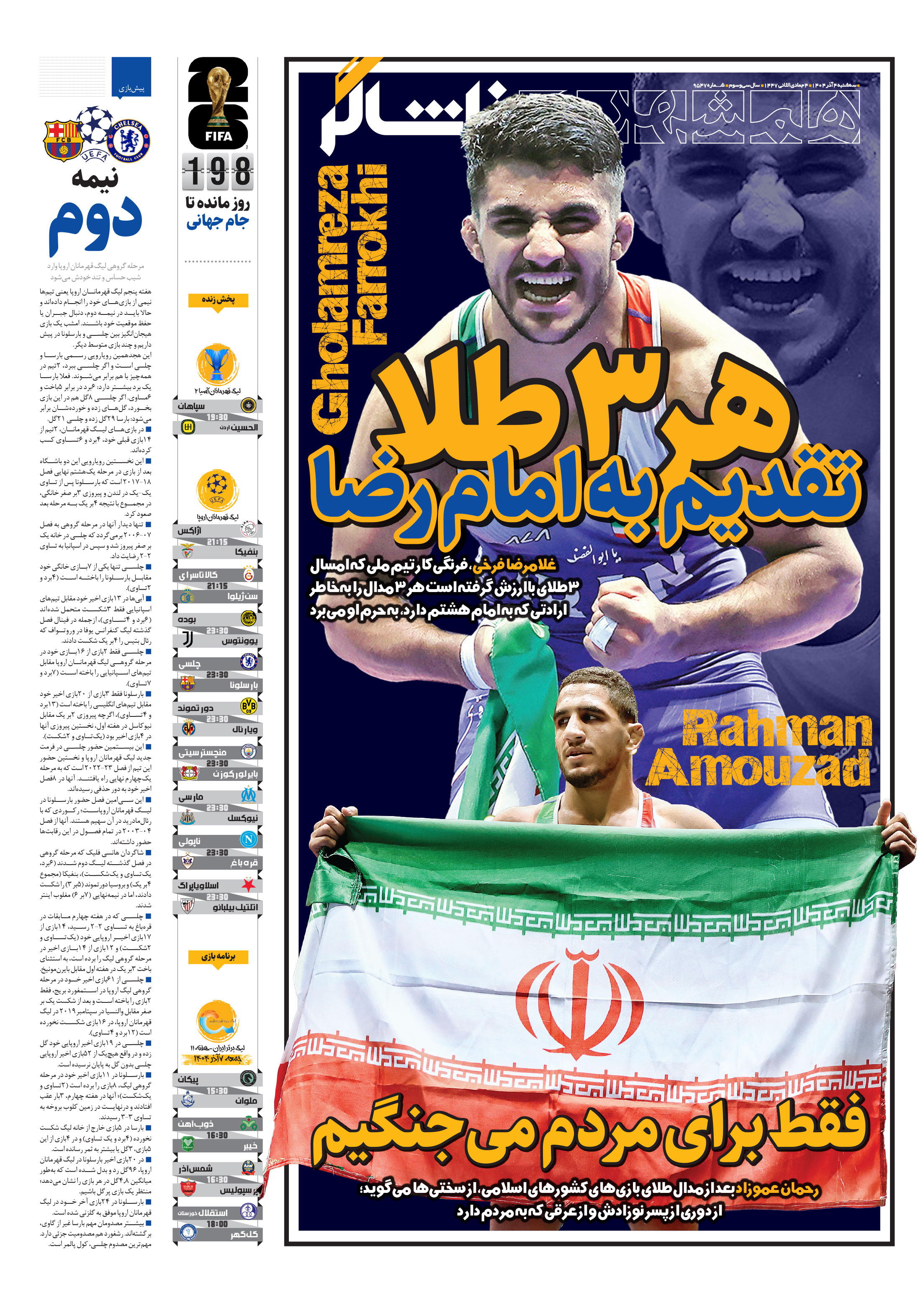 غلامرضا فرخی، فرنگیکار تیم ملی که امسال 3طلای باارزش گرفته است هر 3مدال را بهخاطر ارادتی که به امام هشتم دارد، به حرم او میبرد