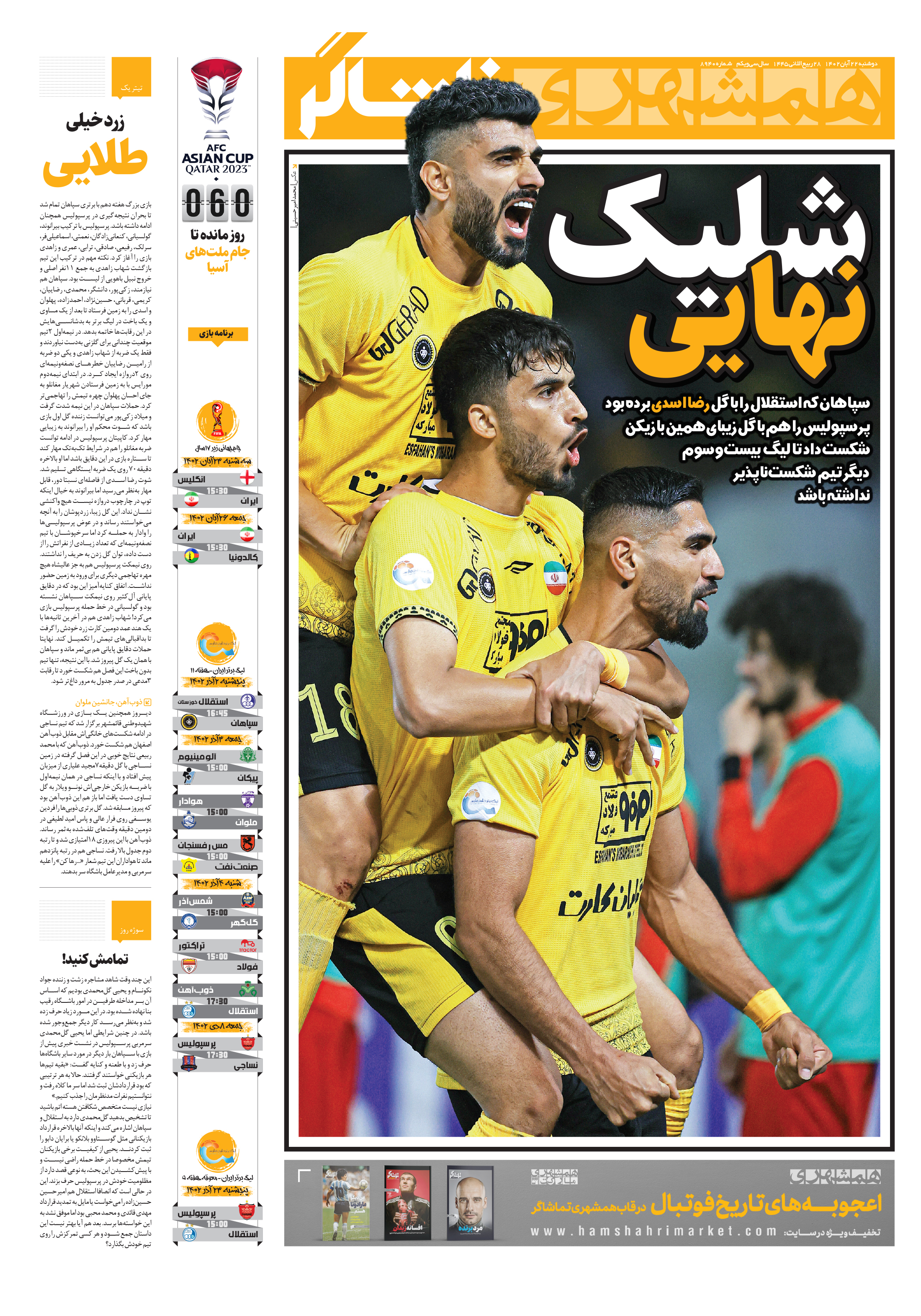 سپاهان که استقلال را با گل رضا اسدی برده بود پرسپولیس را هم با گل زیبای همین بازیکن شکست داد تا لیگ بیستوسوم دیگر تیم شکستناپذیر نداشته باشد