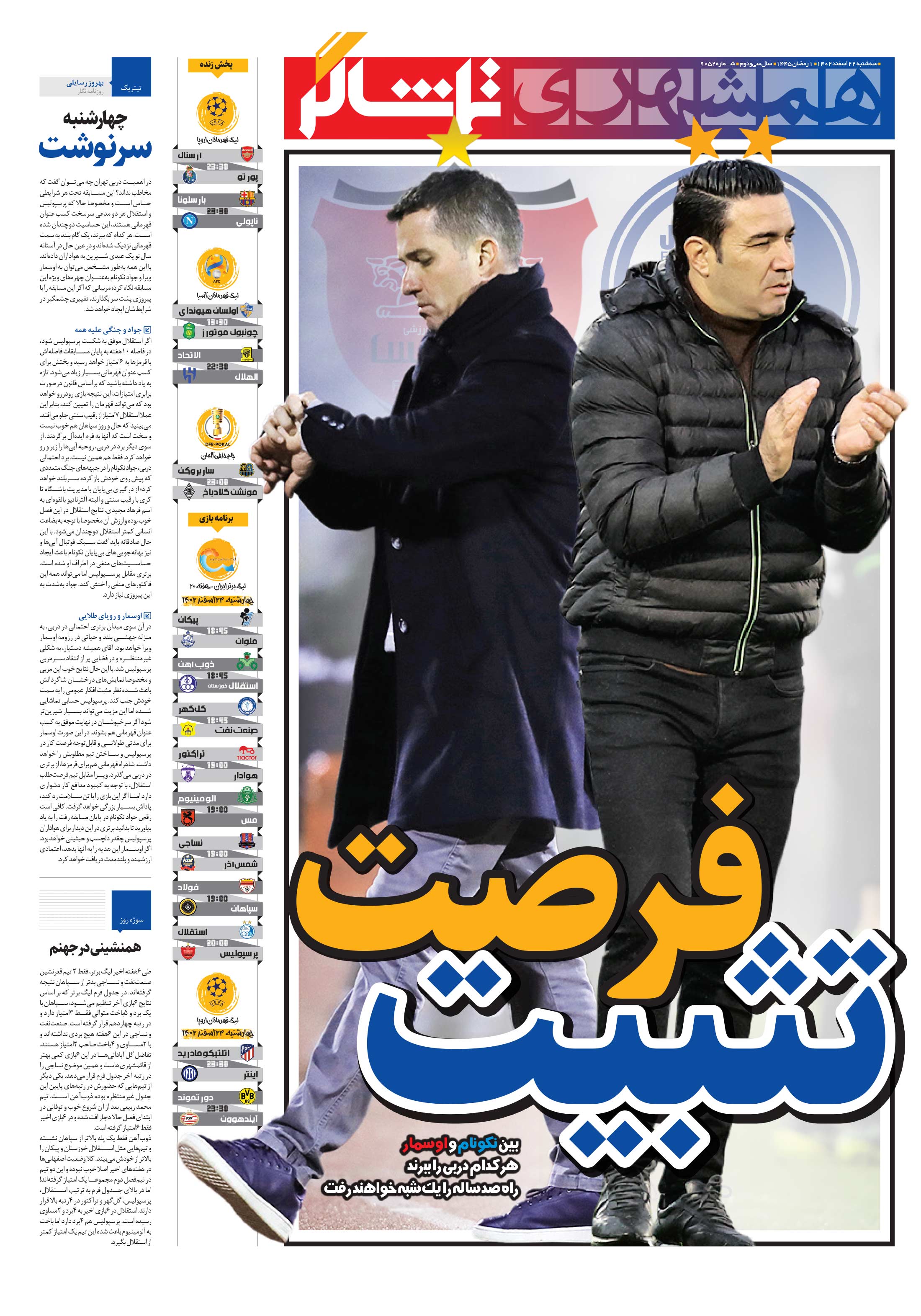 بين نکونام و اوسمار هر کدام دربی را ببرند راه صدساله را يکشبه خواهند رفت