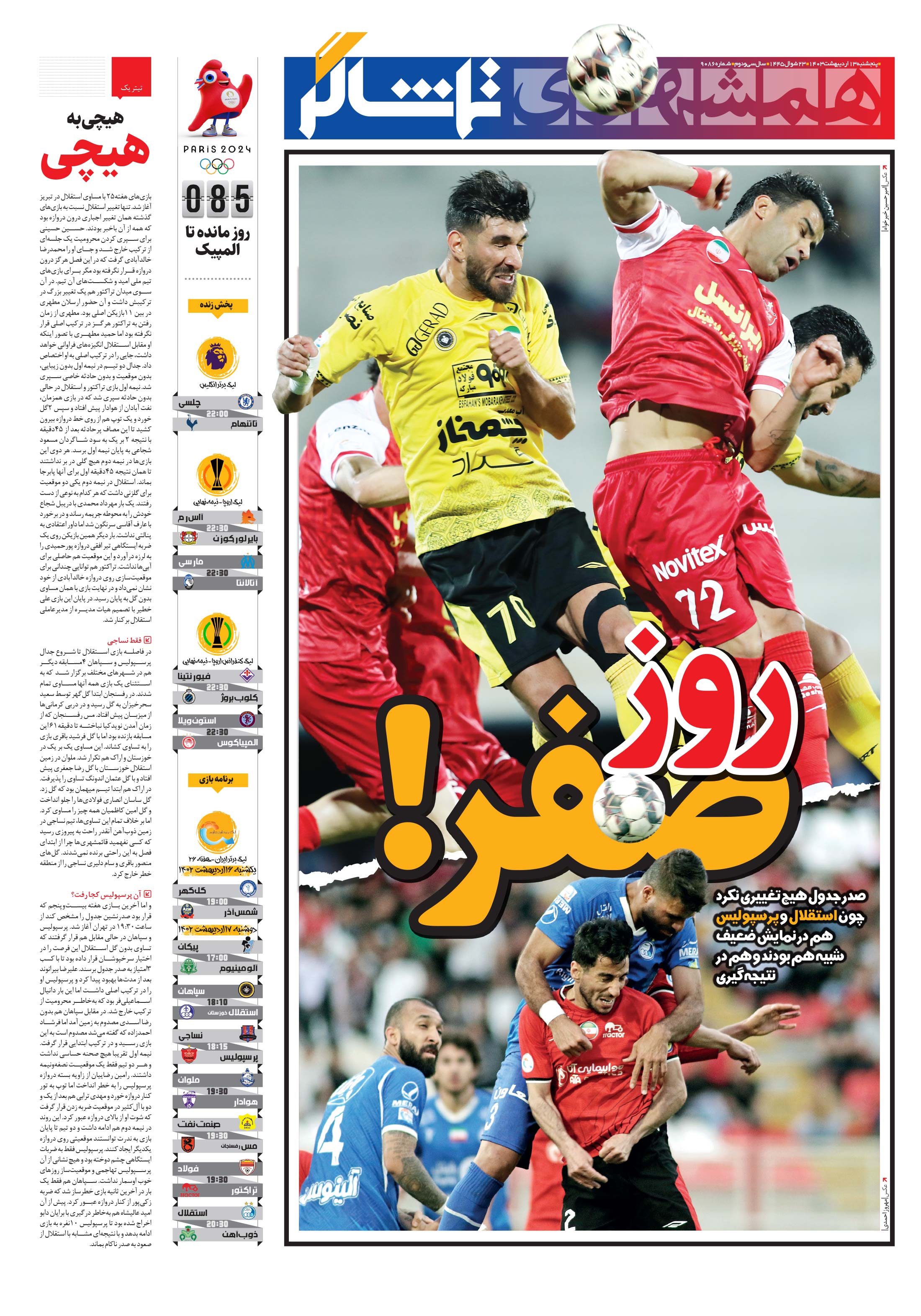 صدر جدول هيچ تغييري نکرد چون استقلال و پرسپوليس هم در نمايش ضعيف شبيه هم بودند و هم در نتيجهگيري