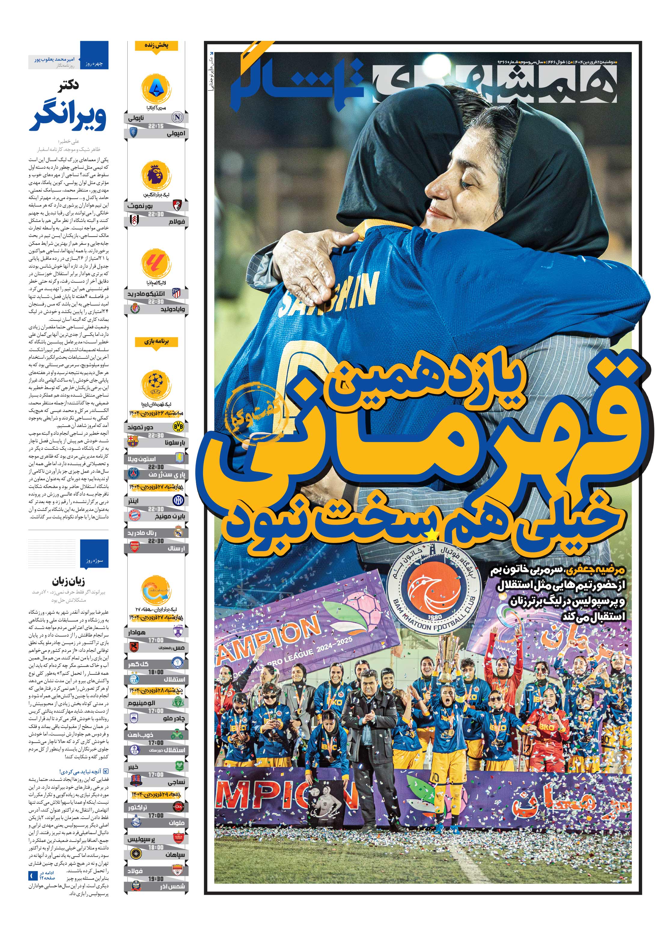 خاتون بم فصل متفاوتی را در فوتبال ایران تجربه کرد. علاوه بر قهرمانی تکراری در لیگ ایران، خاتون توانست نخستین تیم فوتبالی ایران باشد که به مرحله یکچهارم نهایی لیگ قهرمانان آسیا صعود میکند.