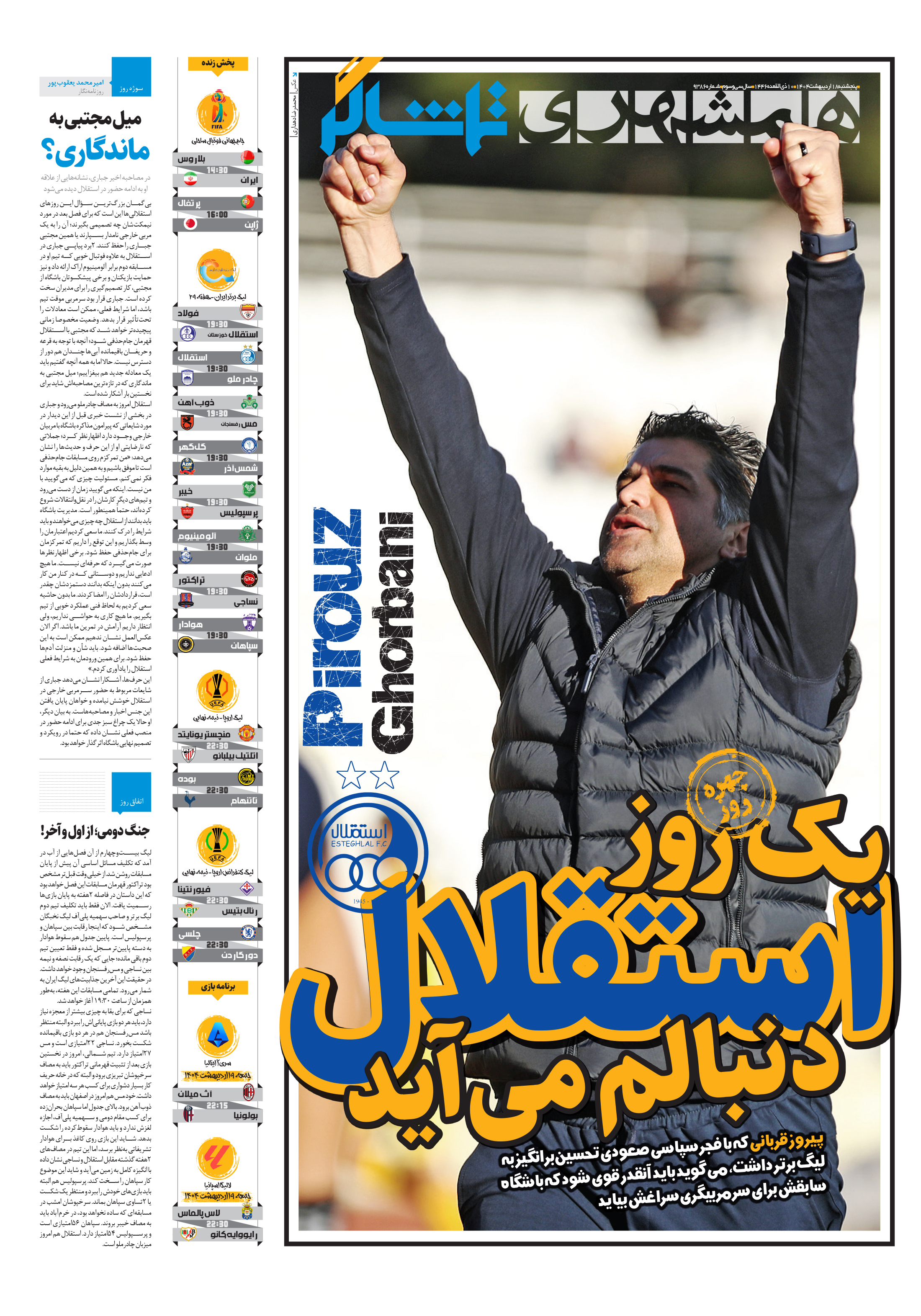 بیگمان بزرگترین سؤال این روزهای استقلالیها این است که برای فصل بعد در مورد نیمکتشان چه تصمیمی بگیرند؛ آن را به یک مربی خارجی نامدار بسپارند یا همین مجتبی جباری را حفظ کنند.