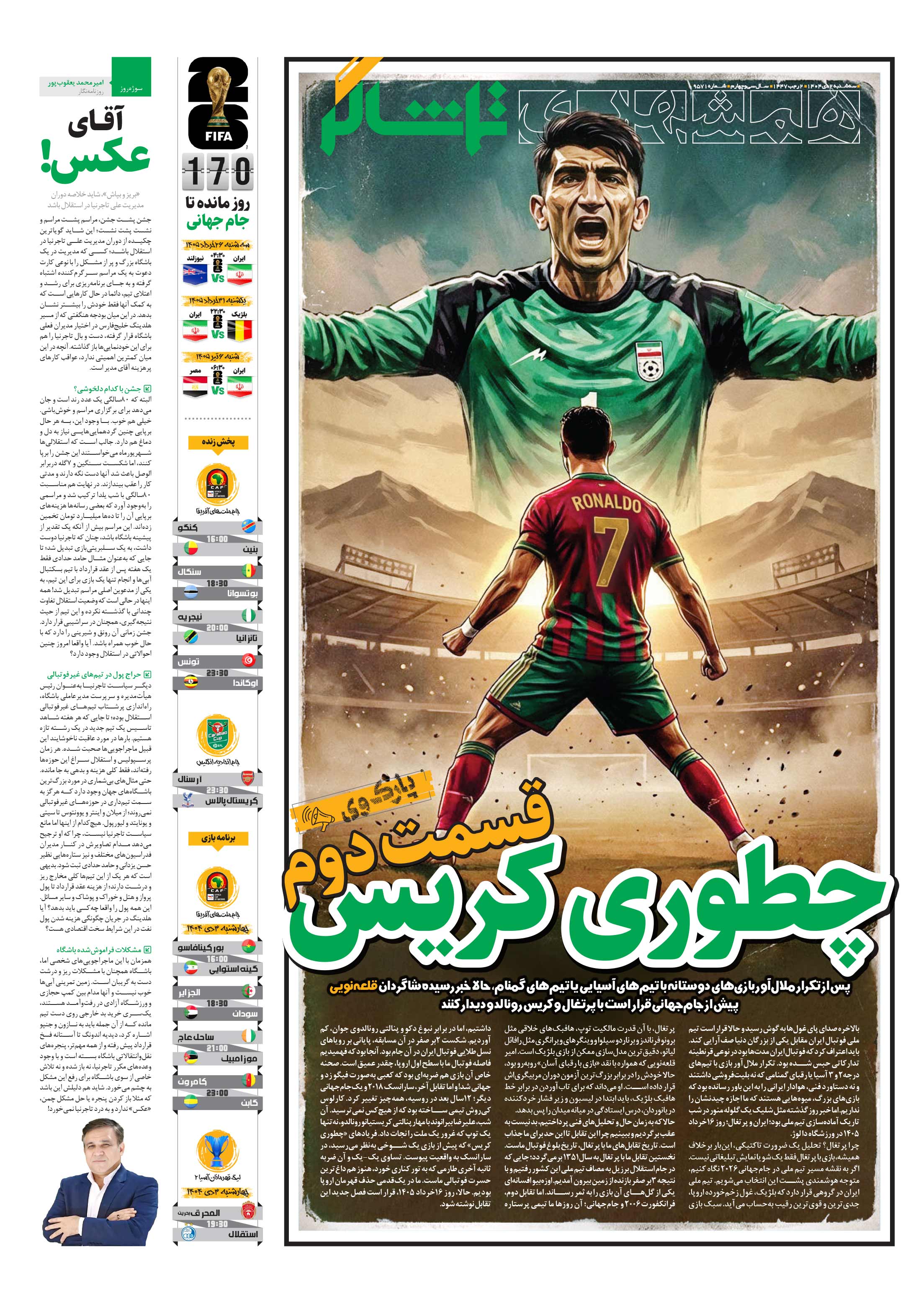 پس از تکرار ملالآور بازيهاي دوستانه با تيمهاي آسيايي يا تيمهاي گمنام، حالا خبر رسيده شاگردان قلعهنويي پيش از جامجهاني قرار است با پرتغال و کريس رونالدو ديدار کنند