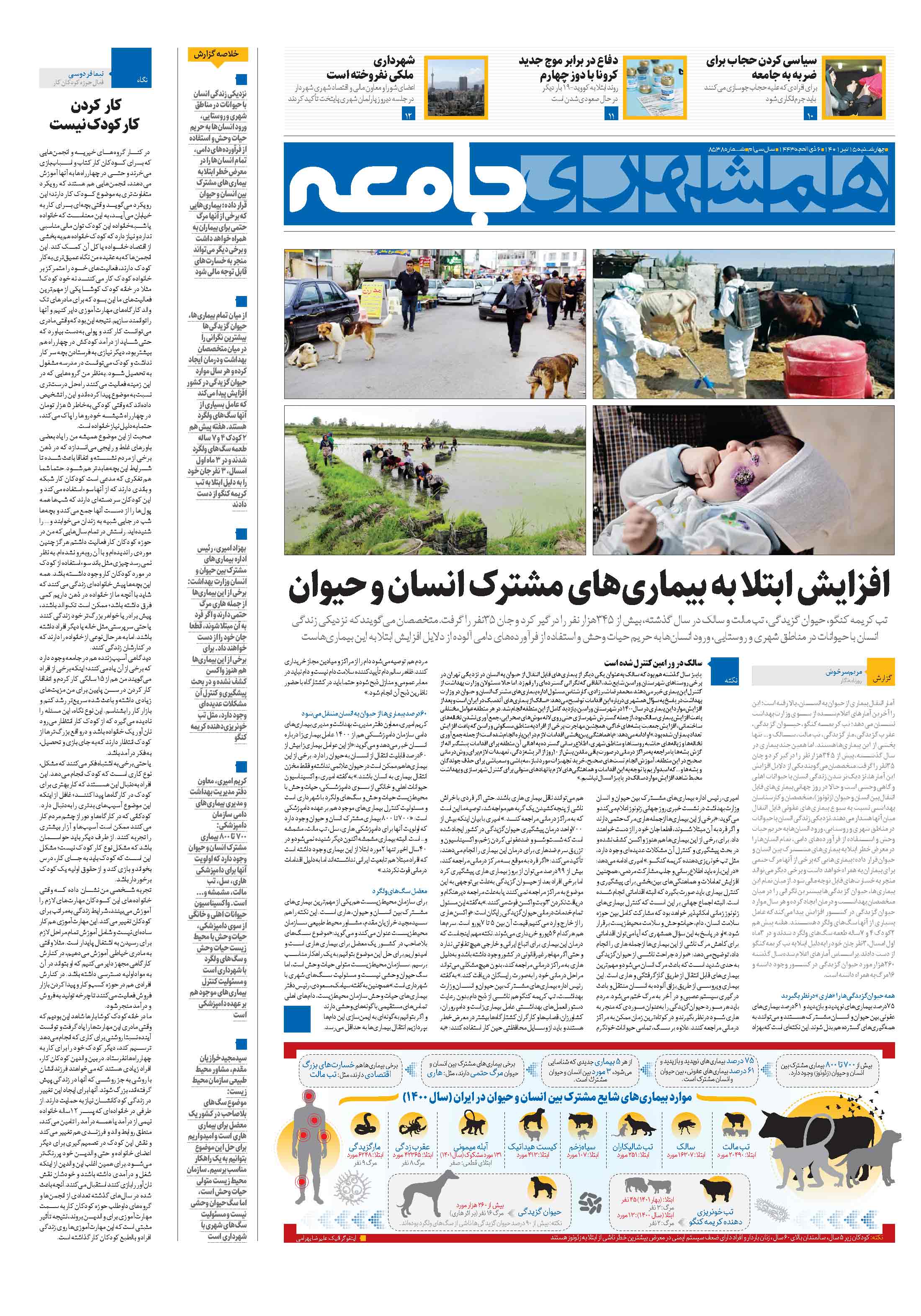 آمار انتقال بیماری از حیوان به انسان، بالا رفته است؛ این را آخرین آمارهای اعلام شده از سوی وزارت بهداشت نشان میدهد؛ تب کریمه کنگو، حیوان گزیدگی، عقرب گزیدگی، مار گزیدگی، تب مالت، سالک و... تنها بخشی از این بیماریها هستند.