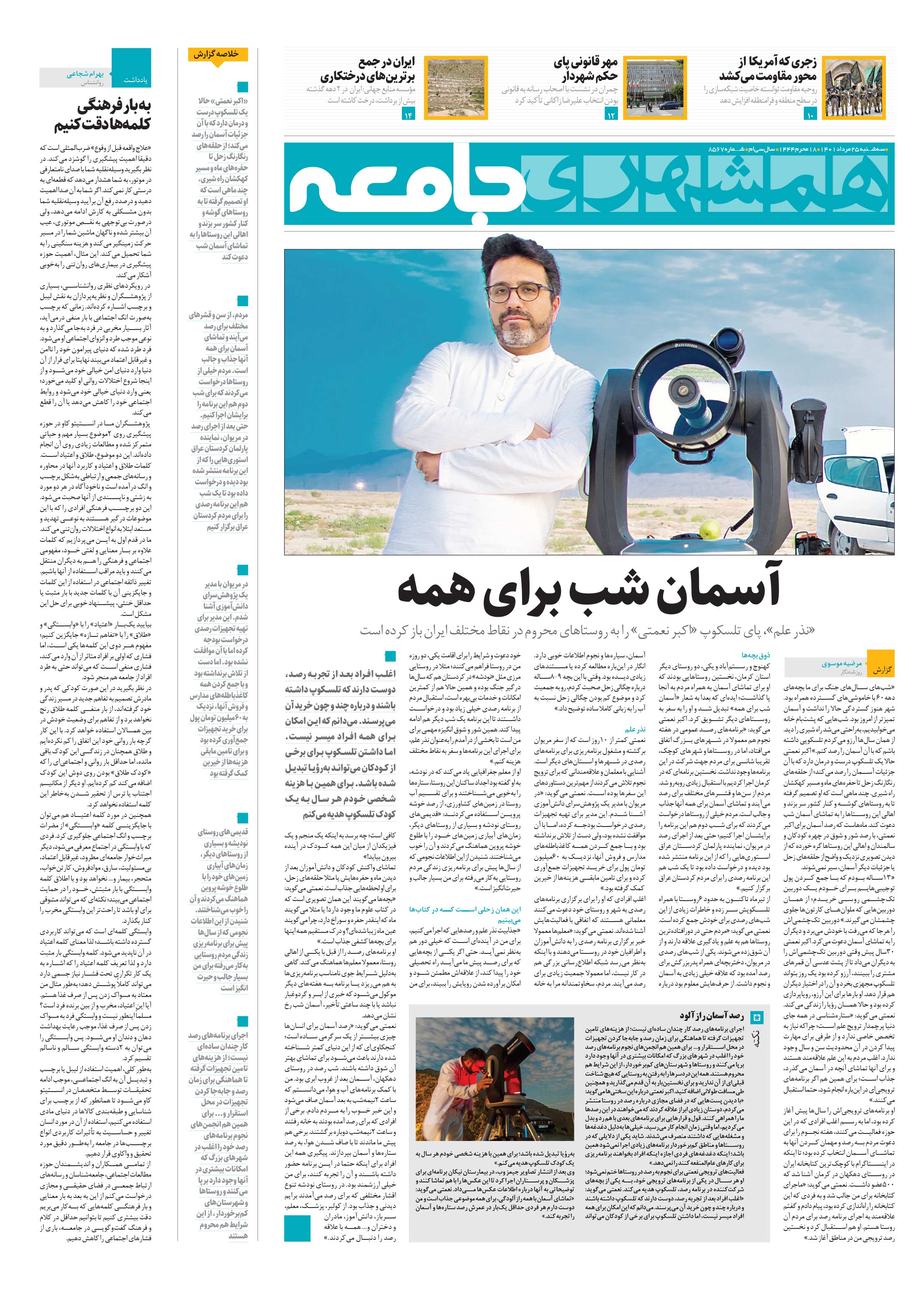 «نذر علم»، پای تلسکوپ «اکبر نعمتی» را به روستاهای محروم در نقاط مختلف ایران باز کرده است