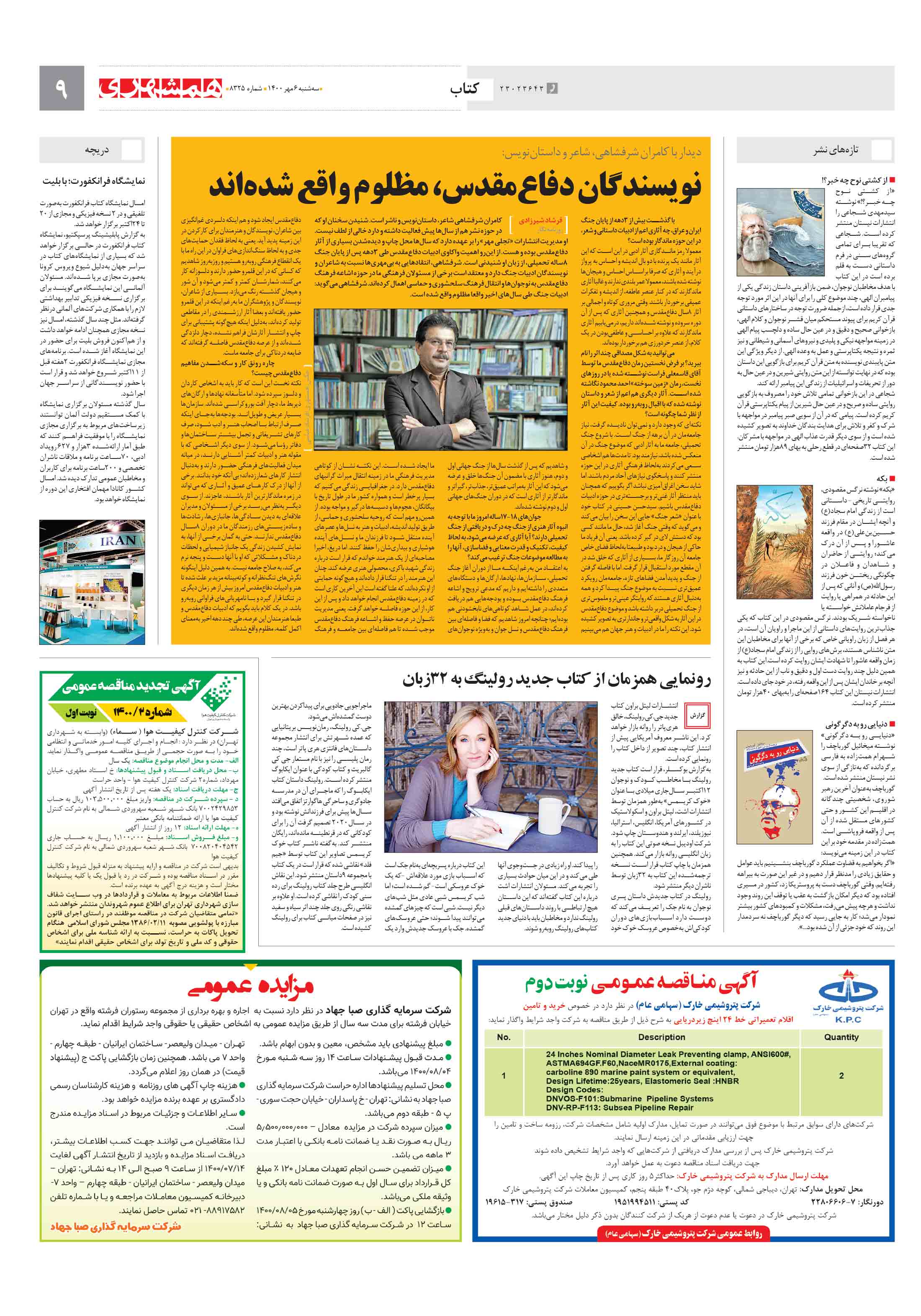کامران شرفشاهی شاعر، داستاننویس و ناشر است. شنیدن سخنان او که در حوزه نشر هم از سالها پیش فعالیت داشته و دارد خالی از لطف نیست. او مدیریت انتشارات «تجلی مهر» را بر عهده دارد که سالها محل چاپ و دیدهشدن بسیاری از آثار دفاعمقدس بوده و هست.
