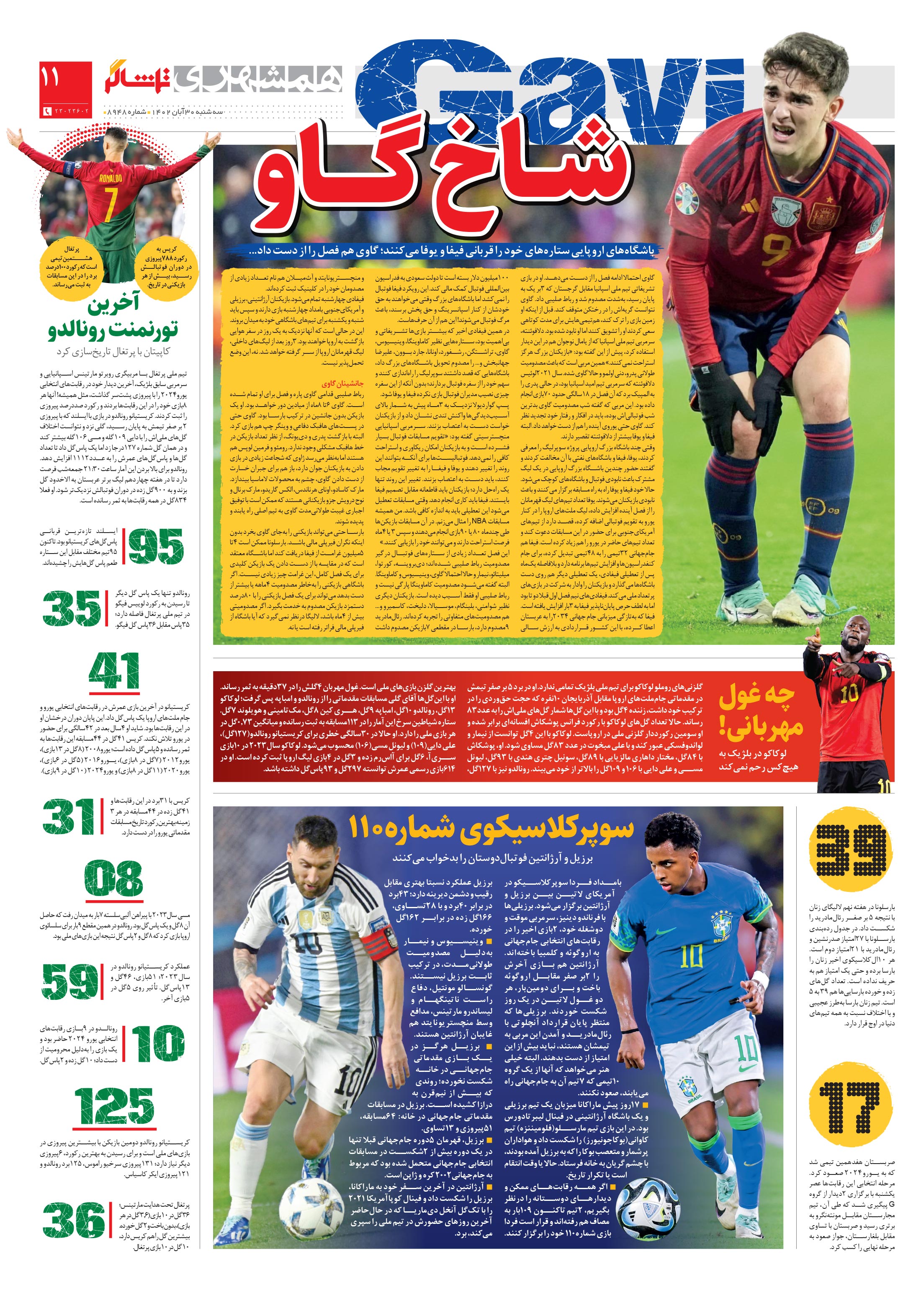 گاوی احتمالا ادامه فصل را از دست میدهد. او در بازی تشریفاتی تیم ملی اسپانیا مقابل گرجستان که 3بر یک به پایان رسید، بهشدت مصدوم شد و رباط صلیبی داد. گاوی نتوانست گریهاش را در رختکن متوقف کند.